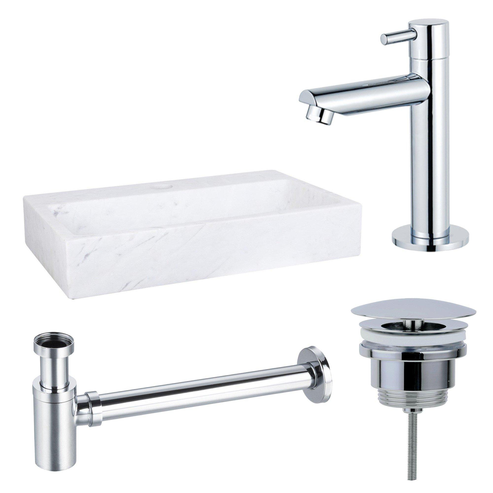 FugaFlow Eccelente Pietra fonteinset - 38x24x8cm - 1 kraangat - marmer - fonteinkraan chroom - wit