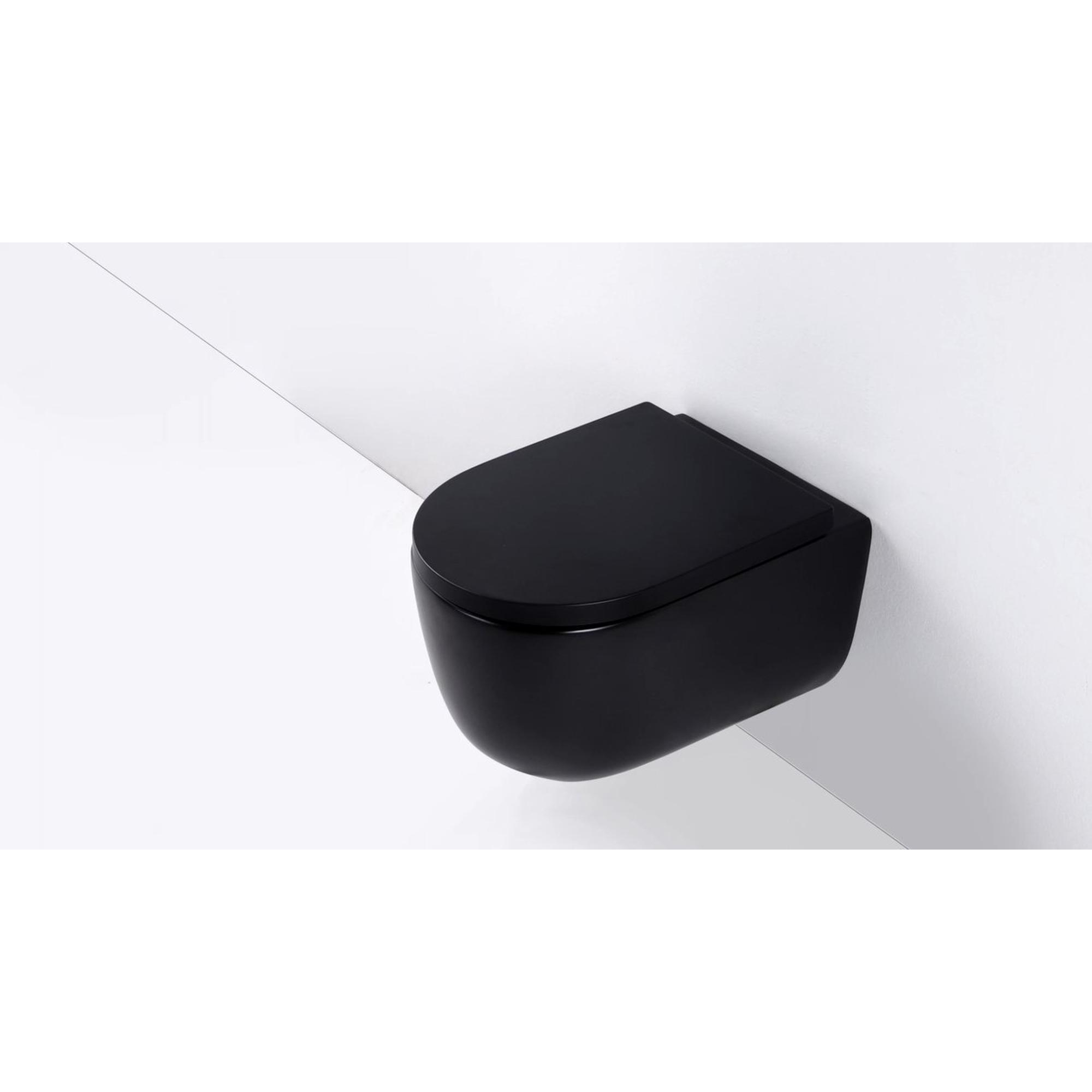FugaFlow Eccelente Pietra Swirl Wandclosetset - 36.5x53.0cm - diepspoel - rimless - softclose zitting - mat zwart