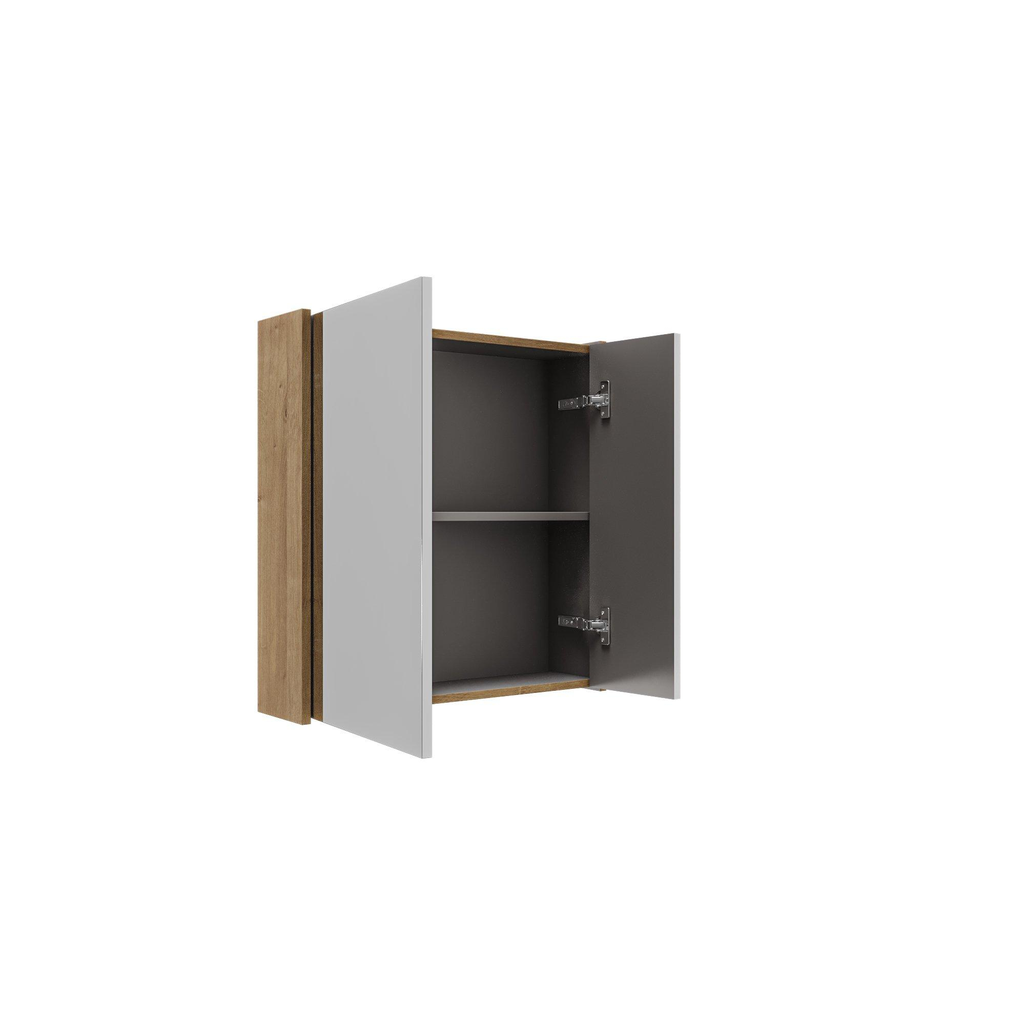 Geef je badkamer een warme en natuurlijke sfeer met deze spiegelkast van massief eikenhout. Dankzij de afmetingen van 60x63x16 cm past hij uitstekend in zowel compacte als ruime badkamers. De meegeleverde zijpanelen zorgen voor een naadloze en stijlvolle afwerking, waardoor de kast niet alleen praktisch is, maar ook een echte eyecatcher wordt. Dit meubel is ideaal voor wie houdt van een rustige, natuurlijke uitstraling en tegelijkertijd behoefte heeft aan voldoende opbergruimte voor dagelijkse verzorgingsproducten. Of je nu een modern, landelijk of klassiek interieur hebt, deze spiegelkast voegt een tijdloze elegantie toe die je badkamer compleet maakt en uitnodigt tot ontspanning.
