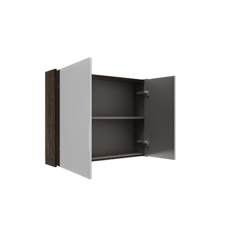 Deze spiegelkast is een toonbeeld van stijlvolle eenvoud. Het gebruik van massief eikenhout in een donkere charcoal tint geeft je badkamer een luxe en natuurlijke uitstraling. Het hout is zorgvuldig afgewerkt, waardoor de structuur en nerven prachtig zichtbaar blijven. Dit zorgt voor een unieke, warme sfeer die je badkamer direct een upgrade geeft. De strakke lijnen en het minimalistische ontwerp passen moeiteloos in zowel moderne als klassieke interieurs. Zo combineer je functionaliteit met een design dat je badkamer echt afmaakt.