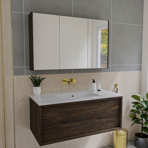 Met deze prachtige spiegelkast geef je jouw badkamer direct een warme en natuurlijke uitstraling. Het massief eikenhout in de kleur charcoal zorgt voor een tijdloze en elegante sfeer, terwijl de ruime afmetingen van 100x63x16 cm je volop opbergruimte bieden. Dankzij de drie draaideuren heb je eenvoudig toegang tot al je badkamerbenodigdheden, die je netjes en overzichtelijk kunt opbergen. De bijgeleverde zijpanelen maken het geheel compleet en zorgen voor een strakke afwerking aan de zijkanten. Deze spiegelkast is niet alleen een functioneel meubelstuk, maar ook een echte blikvanger die je badkamer transformeert tot een rustgevende en stijlvolle ruimte waar je elke dag met plezier begint en eindigt.