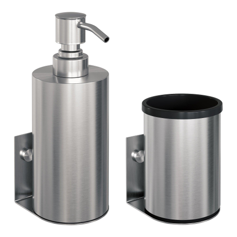 - Accessoireset met zeepdispenser, beker en wandophanging voor optimale organisatie