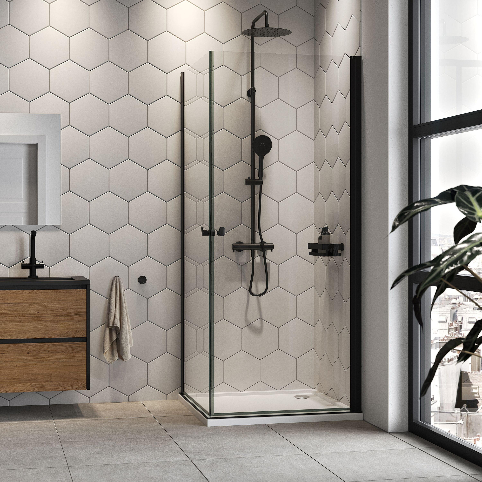 Sealskin Hooked 2-delige hoekinstap - 90x90 cm - 6 mm helder veiligheidsglas - met Sealglas-coating - zwart mat