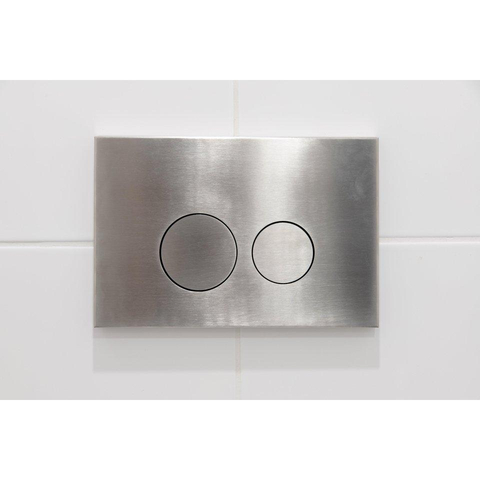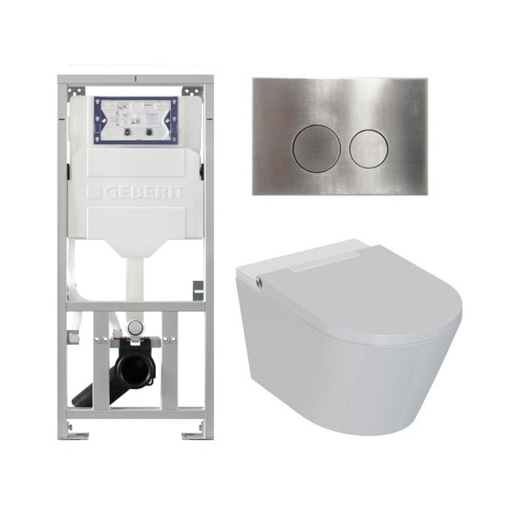 - Complete set met douche-wc, inbouwreservoir, frame en RVS bedieningsplaat met ronde knoppen voor een perfect op elkaar afgestemde oplossing