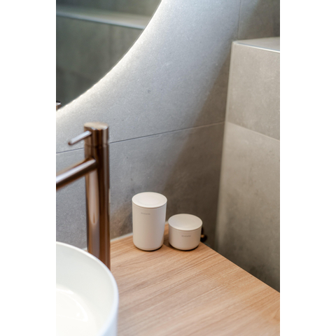 De Brabantia ReNew Opbergpotjes stralen een tijdloze elegantie uit dankzij hun zachte beige kleur en strakke ontwerp. Ze passen moeiteloos in verschillende interieurstijlen en voegen een vleugje verfijning toe aan elke ruimte. De opbergpotjes zijn niet alleen functioneel, maar dienen ook als decoratieve accenten die je badkamer of keuken een luxe uitstraling geven. Met deze set voeg je een stijlvolle touch toe aan je dagelijkse organisatie.