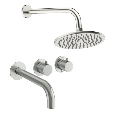 Ben je op zoek naar een strakke, complete regendoucheset voor een moderne badkamer, waarbij design en gebruiksgemak perfect in balans zijn? Dan is deze inbouwoplossing met regendouche, baduitloop en twee hendels een bijzonder slimme keuze. Dankzij de inbouwkraan blijft je doucheruimte rustig en opgeruimd, terwijl de zichtbare onderdelen in geborsteld RVS een luxe, tijdloze uitstraling geven. Deze set komt fantastisch tot zijn recht in een strakke inloopdouche of bij een combinatie van douche en bad, bijvoorbeeld in een familiebadkamer waar dagelijks intensief gebruik wordt gemaakt van de douche. De royale hoofddouche zorgt voor een comfortabele regenstraal, terwijl de praktische baduitloop ideaal is om het bad te vullen of even snel je voeten te spoelen. Kies je voor een duurzame, hoogwaardige oplossing die jarenlang mooi blijft en eenvoudig te bedienen is, dan past deze inbouw regendoucheset naadloos bij jouw wensen.
