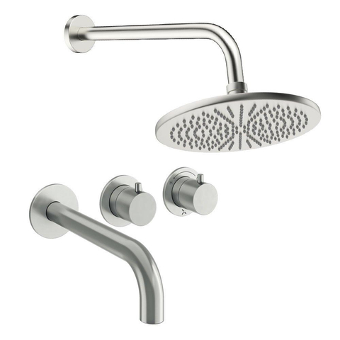 Crosswater Module Regendoucheset inbouw - 2 hendels - baduitloop - 30cm douchekop - wandarm - geborsteld RVS