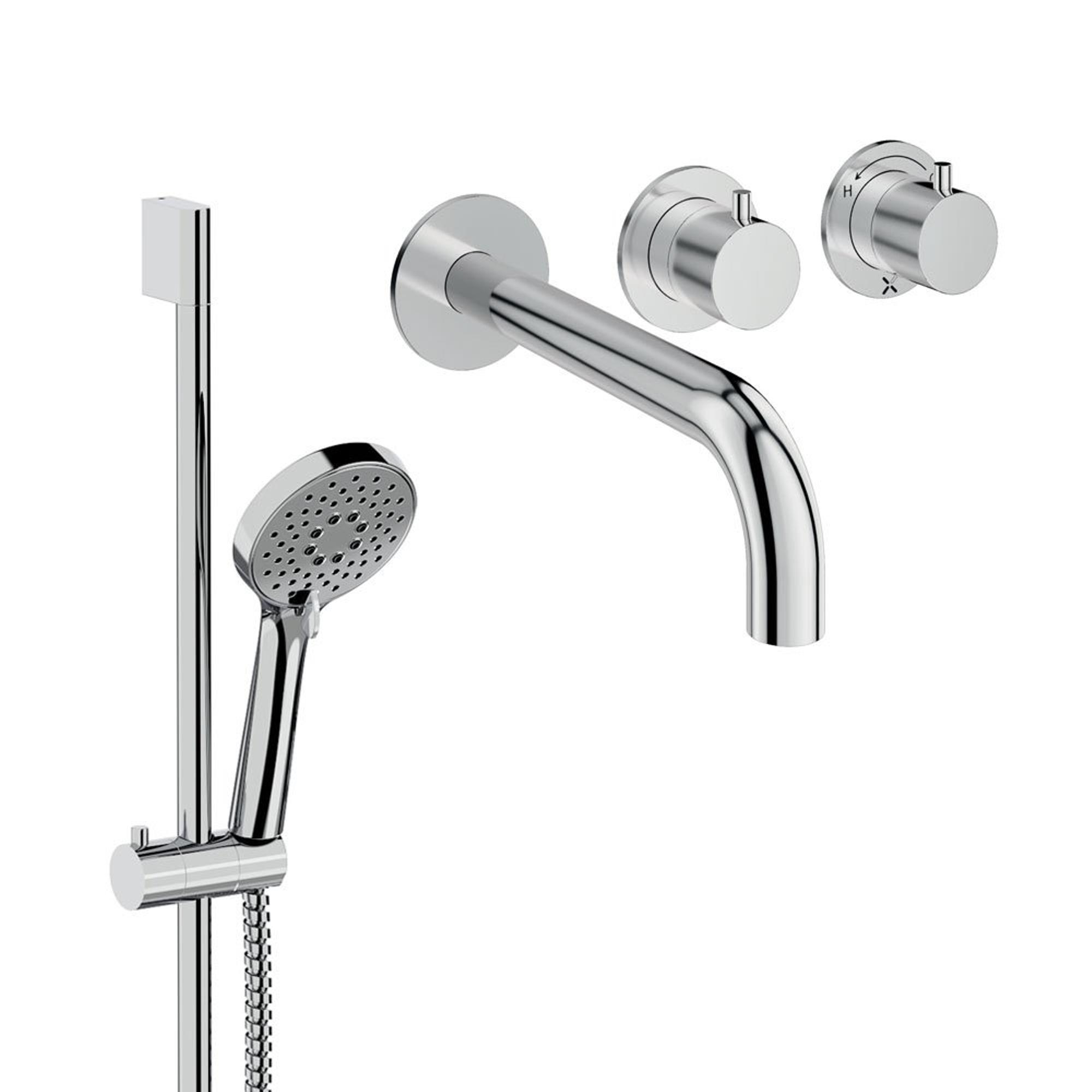 - Complete badkraanset met twee hendels, baduitloop, handdouche en glijstang voor een veelzijdige bad- en doucheoplossing.