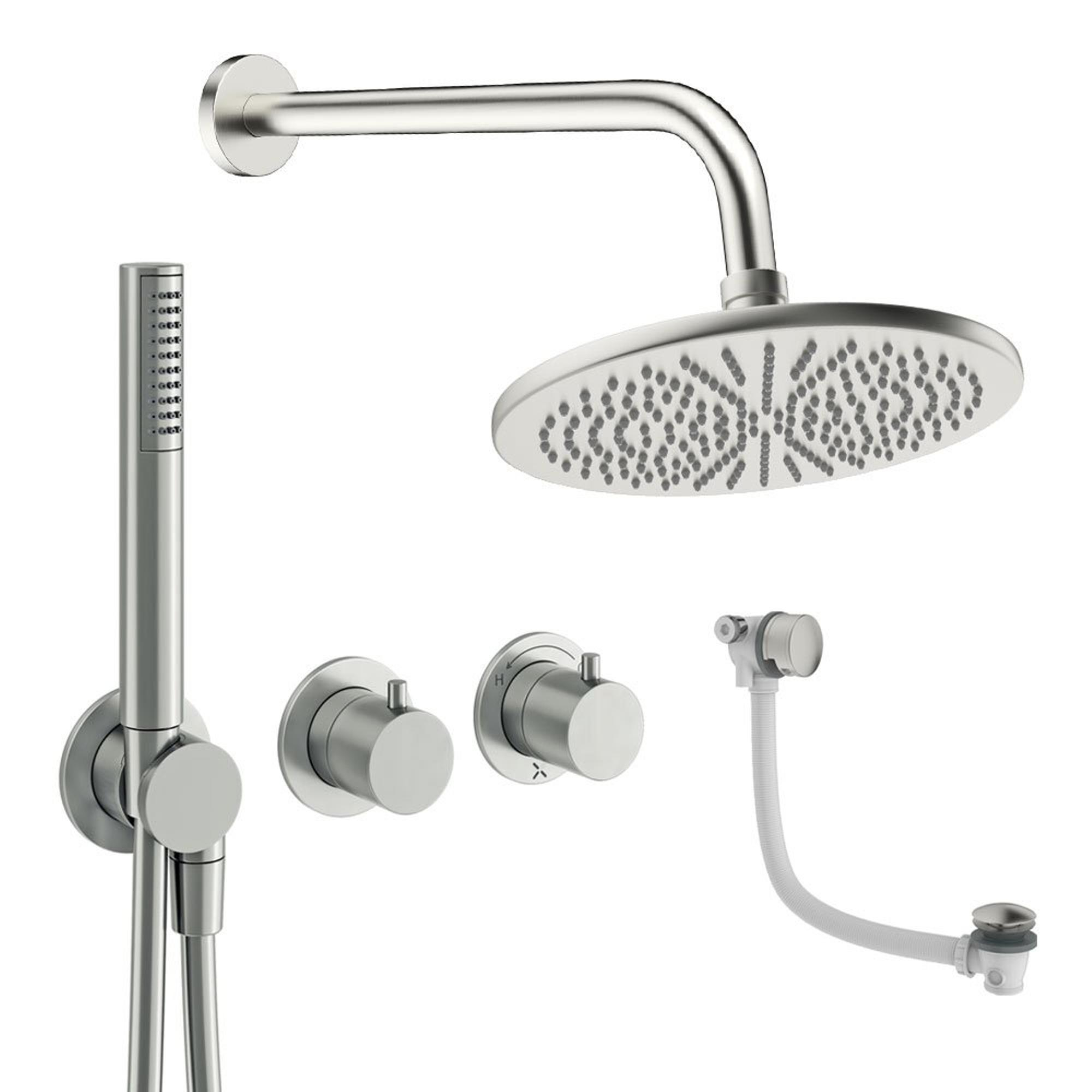 Crosswater Module Regendoucheset inbouw - 2 hendels - badafvoer - 30cm douchekop - handdouche - wandarm - geborsteld RVS