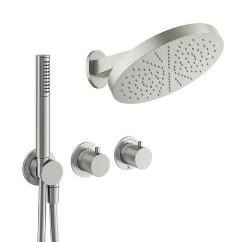 Crosswater Module Regendoucheset inbouw - 2 hendels - 30cm douchekop - handdouche - wandarm - geborsteld RVS