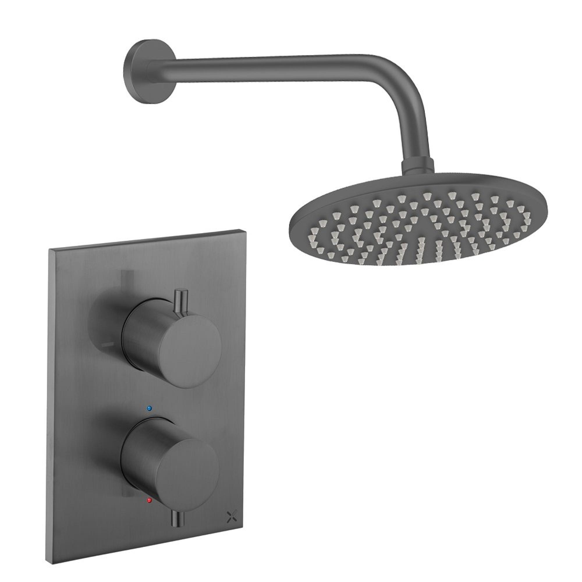 Crosswater MPRO Regendoucheset inbouw - 2 hendels - 20cm douchekop - wandarm - gunmetal