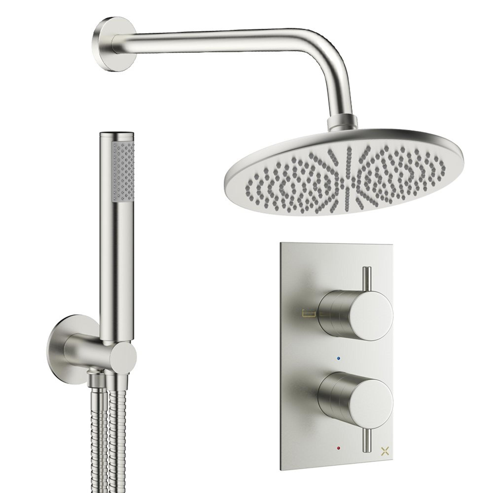 Crosswater MPRO Regendoucheset inbouw - 2 hendels - 30cm douchekop - handdouche - wandarm - geborsteld RVS
