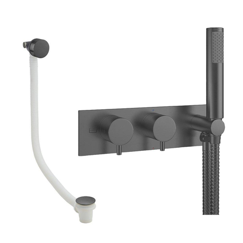Deze complete set is ideaal als je je bad wilt voorzien van een praktische én stijlvolle oplossing voor zowel vullen als douchen, zonder dat je losse onderdelen bij elkaar hoeft te zoeken. Dankzij de combinatie van handdouche, badafvoer en twee hendels heb je alles bij de hand voor dagelijks gebruik: van een snelle douche tot een ontspannen bad. De gunmetal kleur past perfect in moderne, industriële en luxe badkamers, maar combineert ook verrassend goed met warme houttinten en lichte tegels. Deze set is een slimme keuze als je houdt van een strakke, opgeruimde look rondom het bad, met zo min mogelijk zichtbare onderdelen. Vooral in designbadkamers, compacte ruimtes of renovatieprojecten waar je in één keer klaar wilt zijn met een doordachte oplossing voor waterbediening en afvoer, komt dit doordachte geheel uitstekend tot zijn recht.