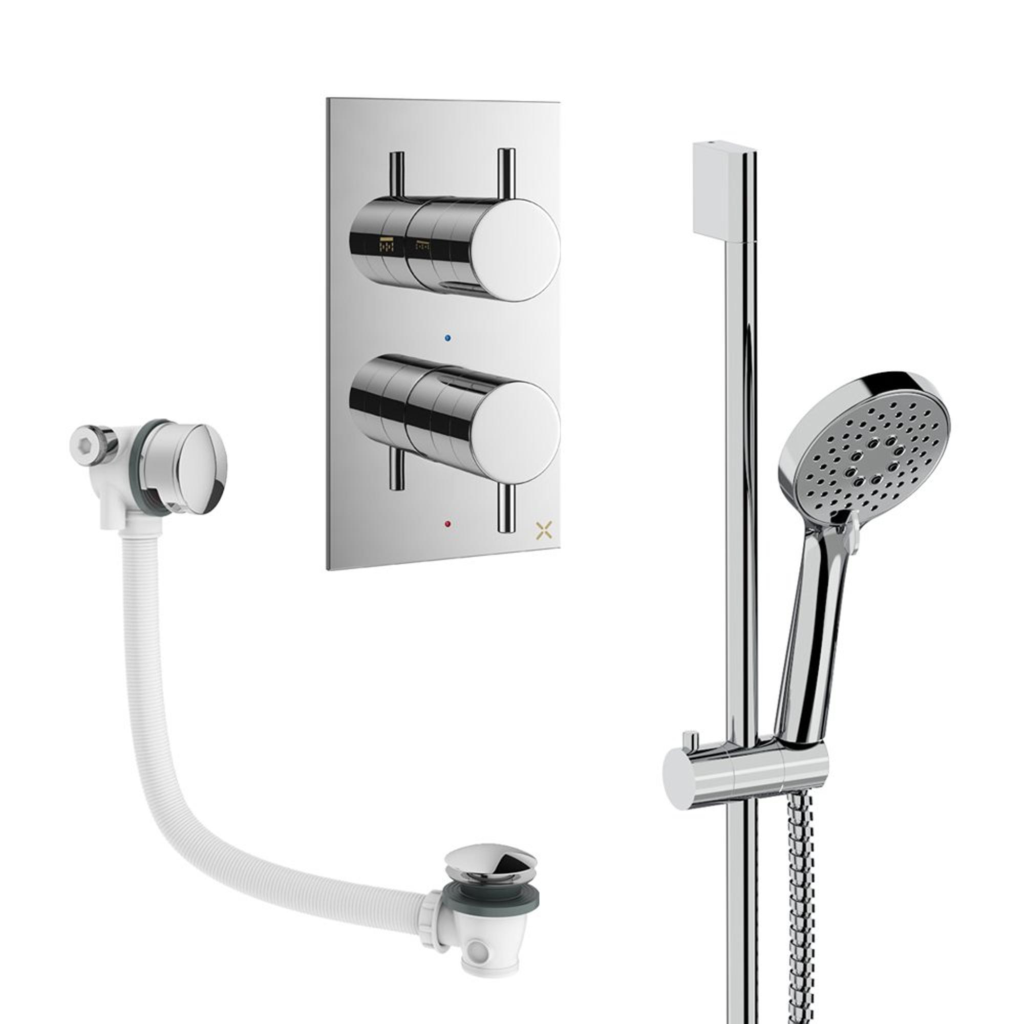 Zoek je een strakke, complete oplossing om je bad en douchehoek in één keer af te stylen, dan is deze set een slimme keuze. Deze combinatie met handdouche, glijstang, badafvoer en bedieningselementen biedt alles wat je nodig hebt voor comfortabel dagelijks gebruik, zonder dat je zelf nog onderdelen bij elkaar hoeft te zoeken. Het tijdloze, chromen design sluit naadloos aan bij moderne en klassieke badkamers, van minimalistisch tot hotel-chic. Dankzij de doordachte vormgeving houd je de ruimte rustig en overzichtelijk, ideaal in zowel compacte badkamers als royale gezinsspa’s. Bovendien is deze set bijzonder geschikt als je houdt van een verzorgde afwerking met ingebouwde bediening: dat oogt luxe, maakt schoonmaken eenvoudiger en zorgt voor jarenlang doucheplezier.