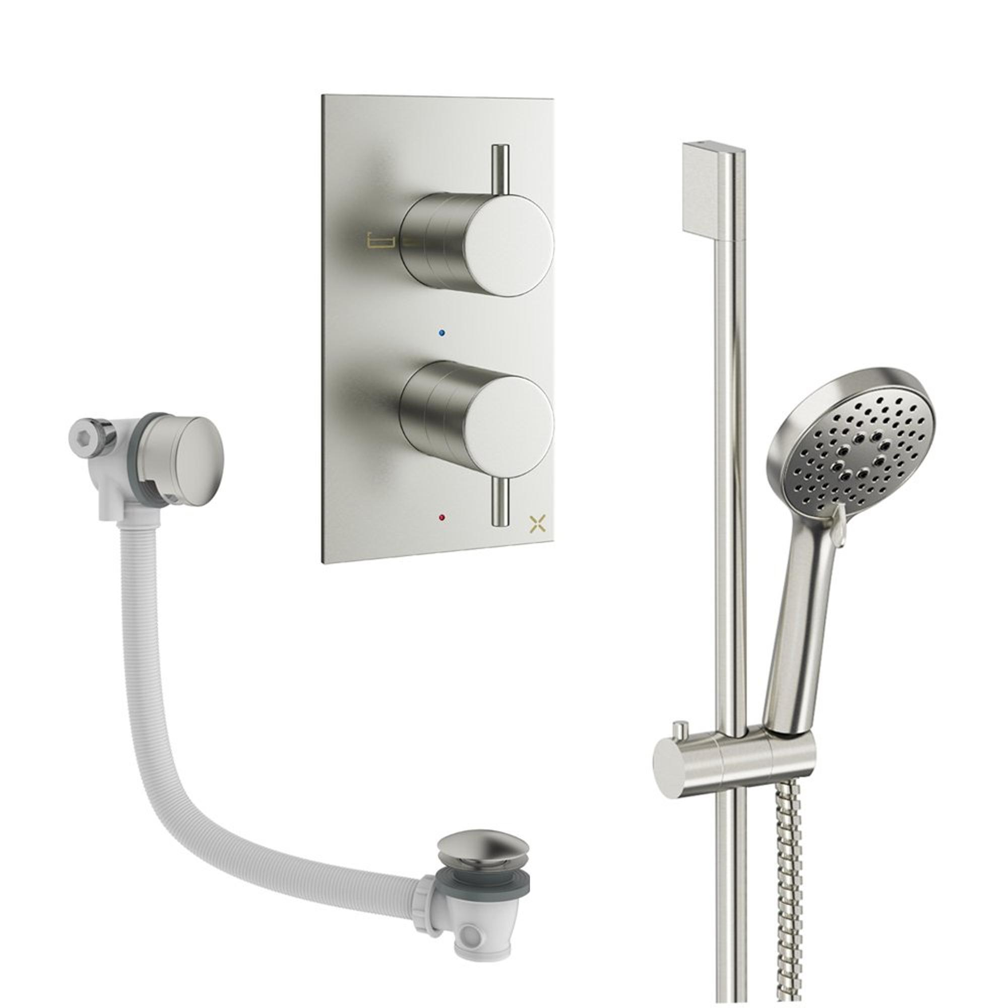 Deze complete set is een slimme keuze als je jouw bad niet alleen een luxe uitstraling wilt geven, maar ook comfortabeler en praktischer in gebruik wilt maken. Dankzij de combinatie van handdouche, glijstang, badafvoer en twee hendels creëer je een overzichtelijke en gebruiksvriendelijke oplossing rondom het bad. Ideaal als je graag doucht in bad, kinderen helpt met wassen of simpelweg houdt van flexibiliteit tijdens je dagelijkse routine. De geborsteld RVS uitstraling past mooi in moderne en industriële badkamers, maar combineert ook goed met een rustige Scandinavische of hotel-chique stijl. Zoek je een alles-in-één oplossing die zowel inbouwtechnisch doordacht is als visueel rustig oogt, dan is deze set een uitstekende basis voor een verzorgde en toekomstbestendige badopstelling.