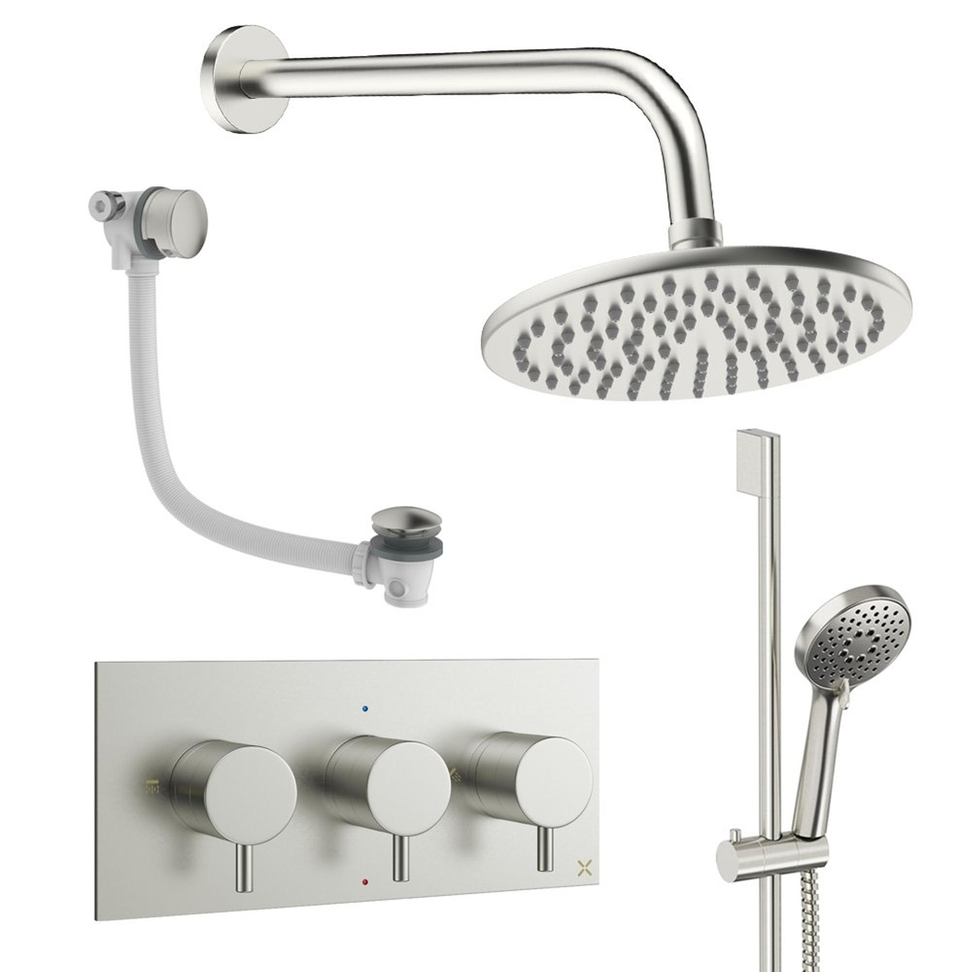 Crosswater MPRO Regendoucheset inbouw - 3 hendels - badafvoer - 20cm douchekop - handdouche - glijstang - wandarm - geborsteld RVS