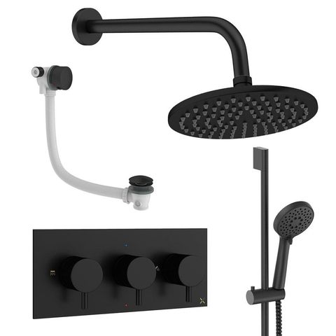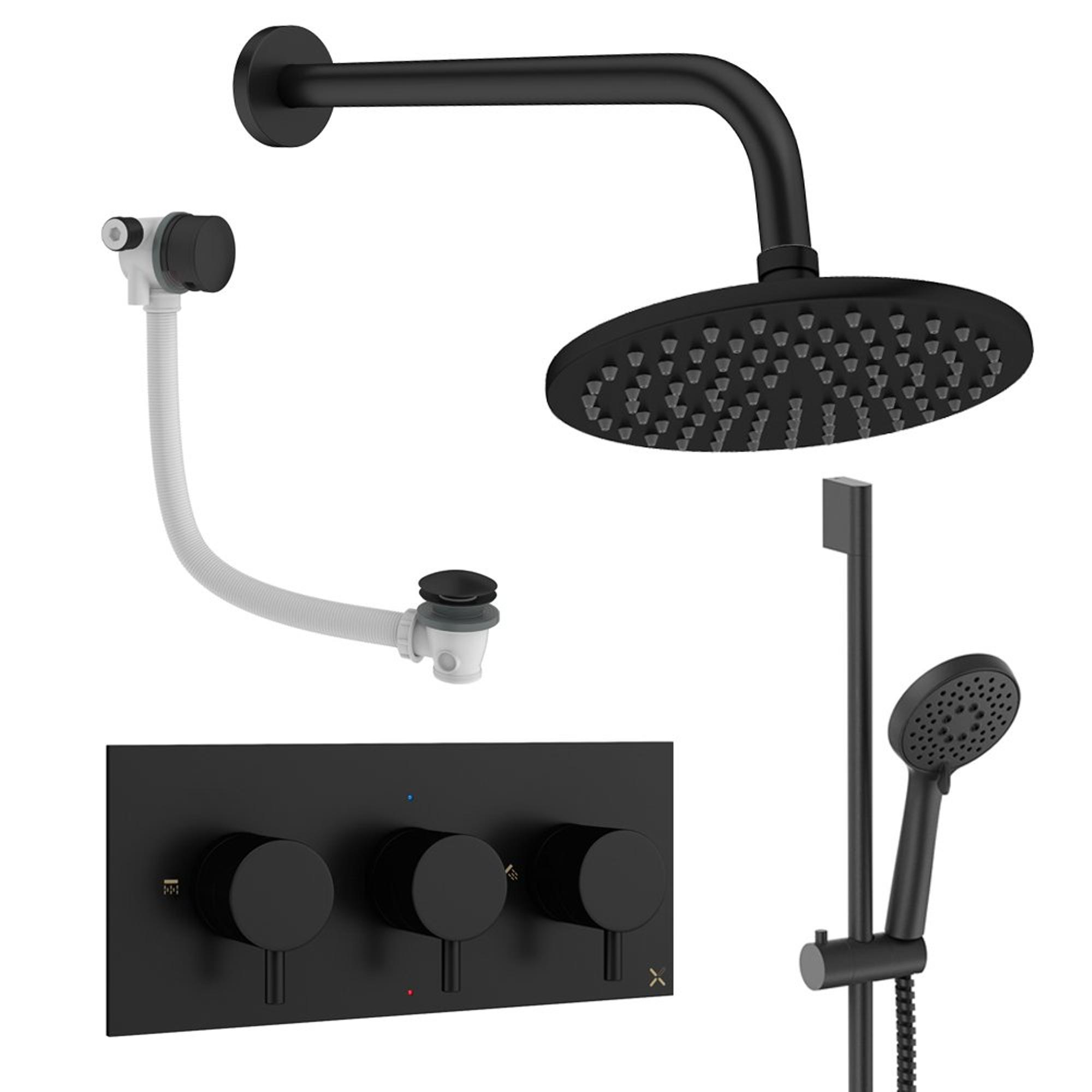 Crosswater MPRO Regendoucheset inbouw - 3 hendels - badafvoer - 20cm douchekop - handdouche - glijstang - wandarm - mat zwart