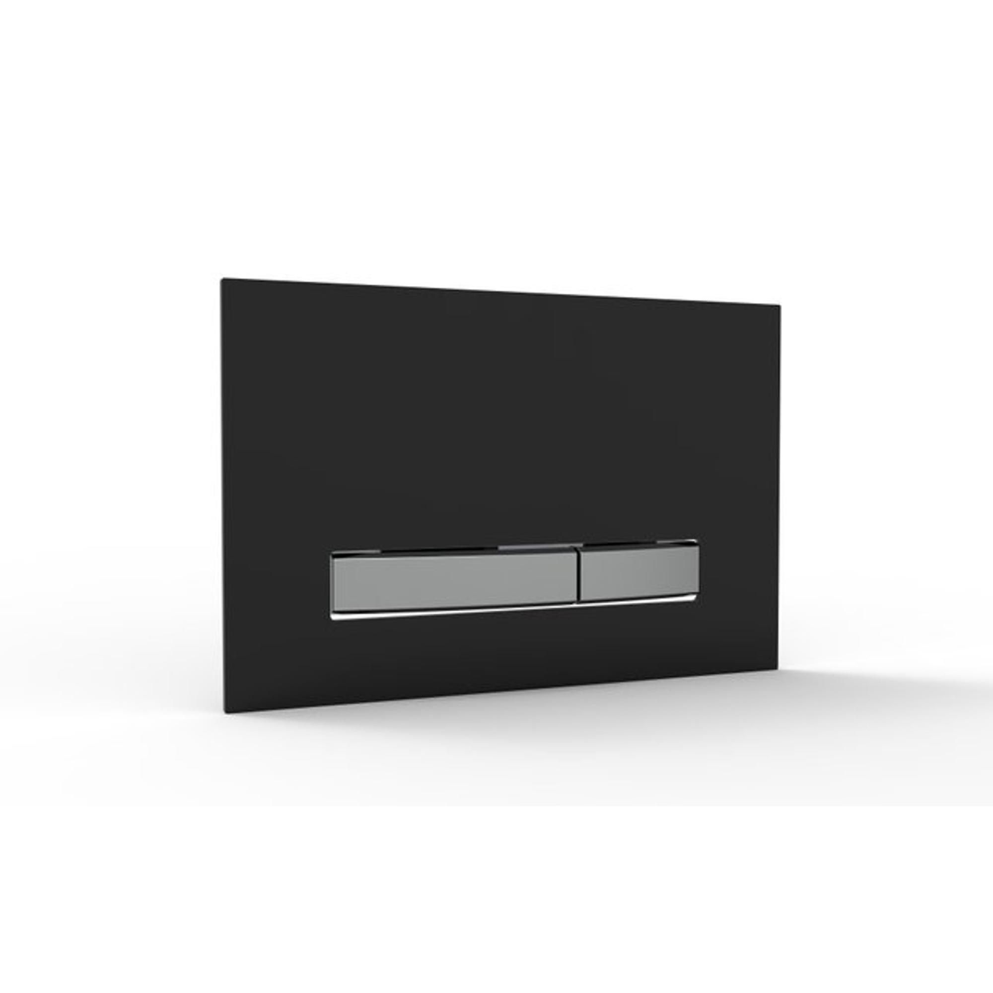 - Mat zwarte metalen bedieningsplaat als stijlvol accent en perfecte match met moderne zwarte details in de badkamer.