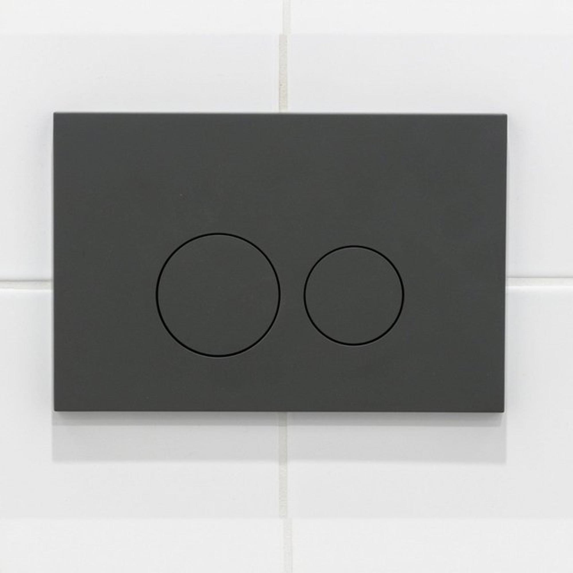 - Mat antraciet kunststof bedieningsplaat met ronde knoppen als stijlvol accent tegen een lichte of donkere muur.