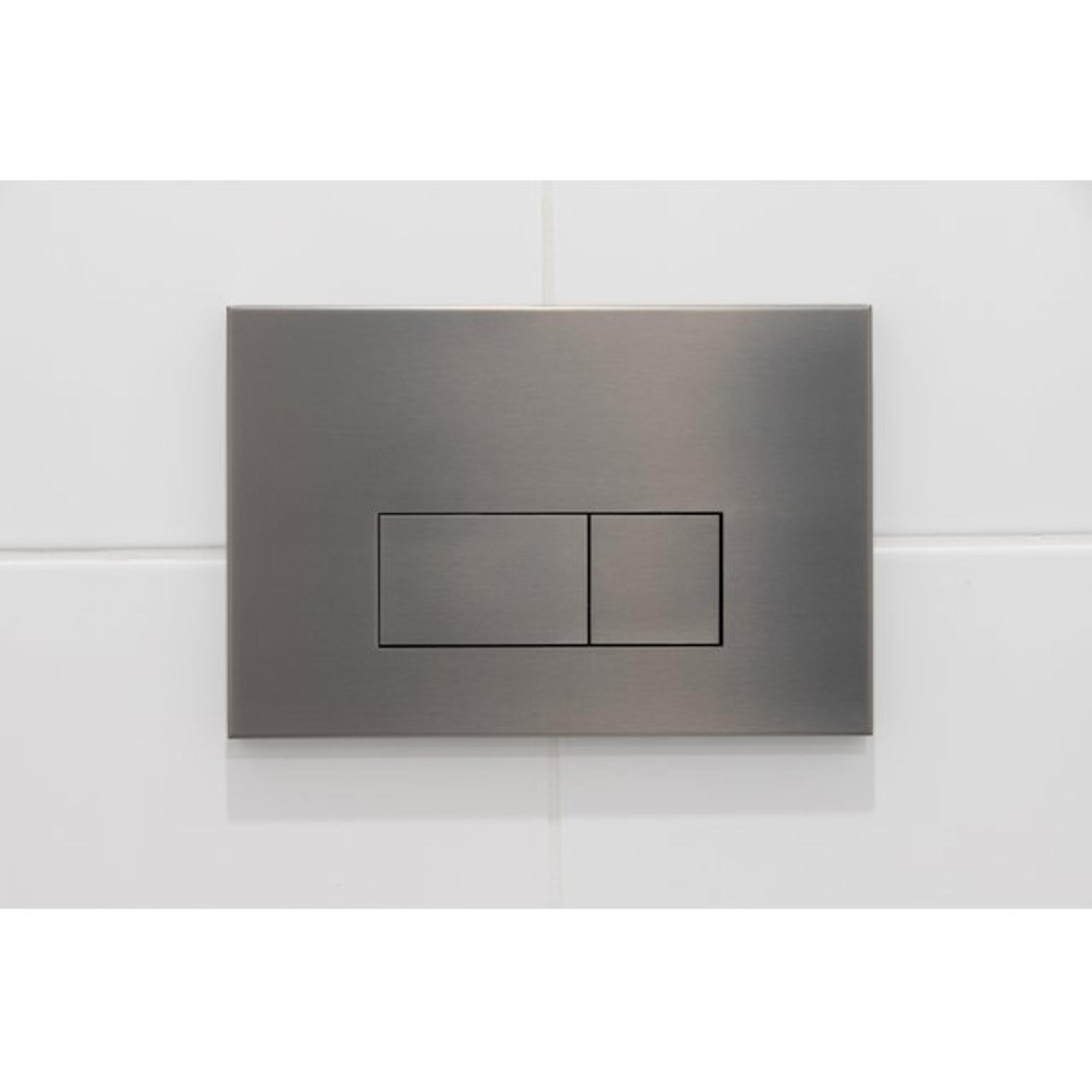 - Gunmetal bedieningsplaat met rechthoekige knoppen als stijlvol accent dat goed past in moderne badkamers en toiletruimtes.