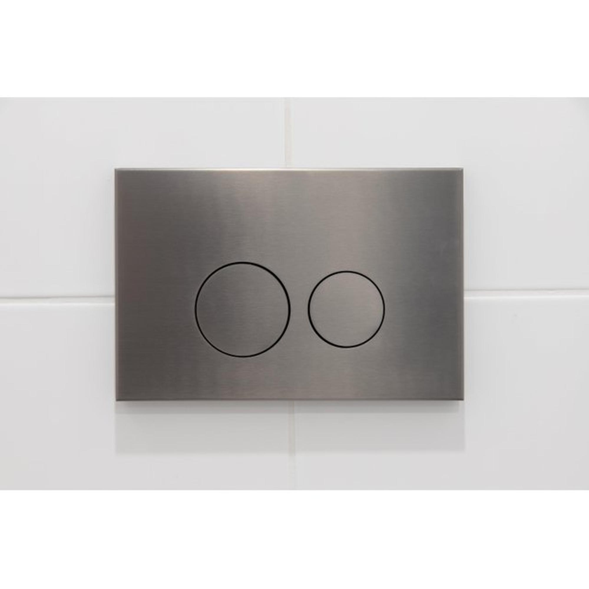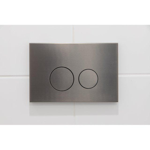 - Stijlvolle gunmetal bedieningsplaat met ronde knoppen als modern accent in je toilet of badkamer.