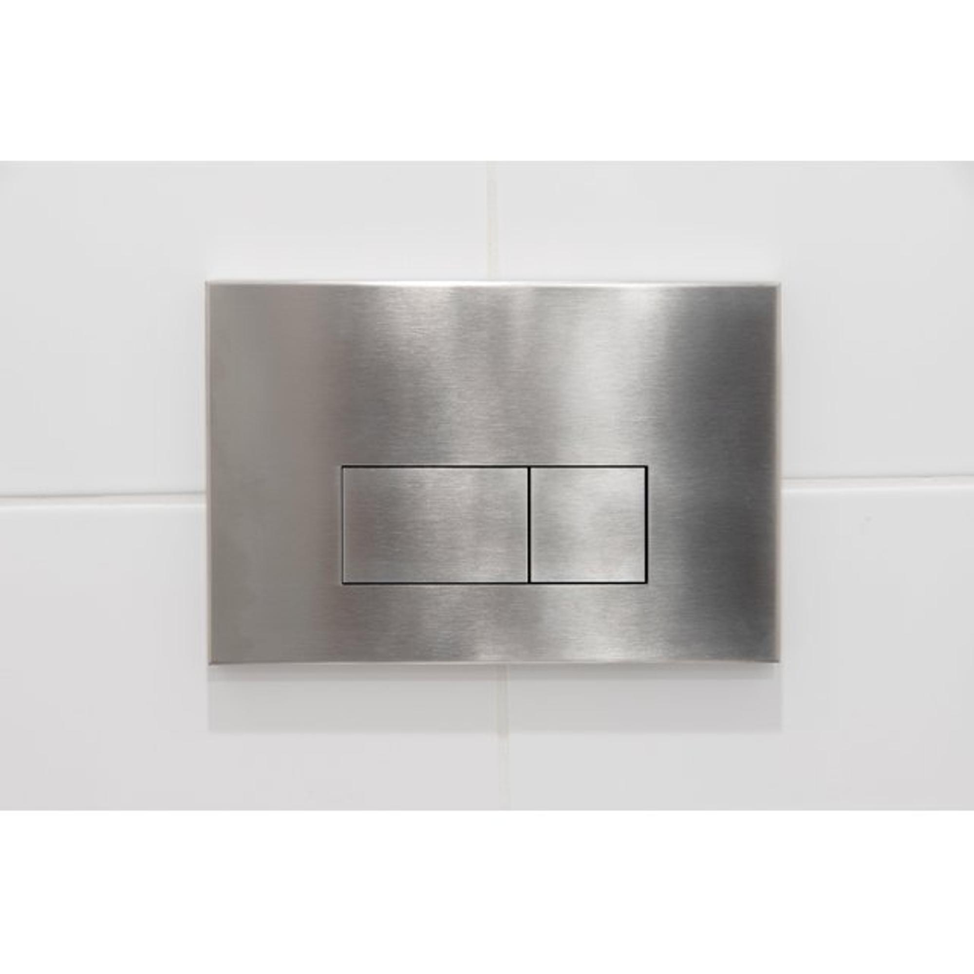 Bij deze set hoort een bijpassende toiletzitting in wit, zodat kleur en vorm mooi op elkaar aansluiten. Dankzij de softclose scharnieren valt de bril altijd zacht en geruisloos dicht, wat niet alleen luxe aanvoelt maar ook beschadigingen voorkomt. De bijgeleverde RVS metalen bedieningsplaat met rechthoekige knoppen geeft je inbouwreservoir een hoogwaardige afwerking. De strakke vormgeving en het koele metaal vormen een mooi contrast met het glanzende wit van het keramiek en sluiten naadloos aan bij andere RVS elementen in de badkamer, zoals kranen of accessoires. Zo creëer je een rustig, doordacht geheel zonder losse onderdelen bij elkaar te hoeven zoeken.