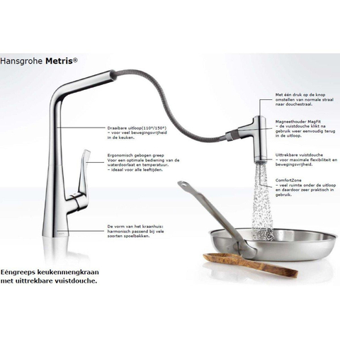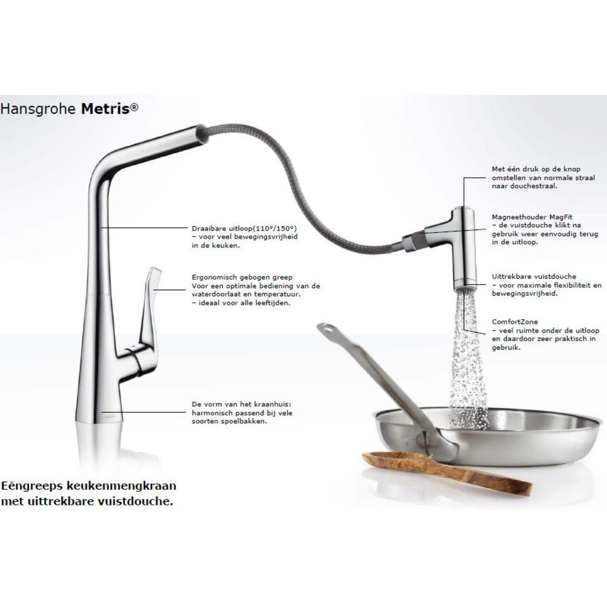Hansgrohe Metris keukenkraan met uittrekbare vuistdouche chroom SHOWROOMMODEL