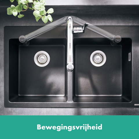 - ComfortZone 320: ruime afstand tussen uitloop en gootsteen voor meer werkruimte