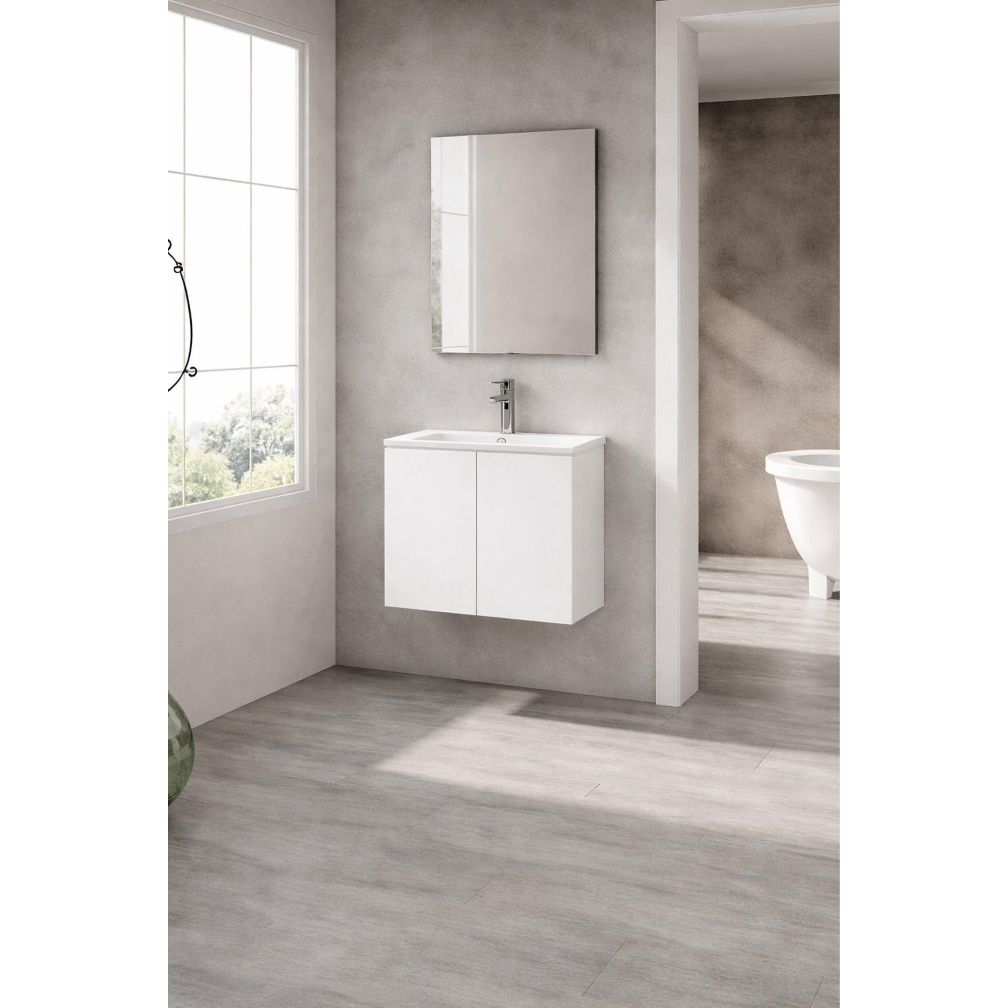 Zoek je een compacte maar complete oplossing voor je badkamer, toilet of kleine doucheruimte, dan is deze set een slimme keuze. Dankzij het ondiepe ontwerp neemt het meubel weinig ruimte in beslag, terwijl je toch beschikt over een volwaardige wastafel met opbergruimte eronder. De strakke vormgeving en matte witte kleur sluiten mooi aan bij moderne en minimalistische badkamers, maar combineren net zo goed met een rustige, tijdloze stijl. De greeploze deuren zorgen voor een opgeruimd geheel en maken het visueel rustiger in kleinere ruimtes. Omdat de wastafel is voorzien van één kraangat, kies je zelf een passende kraan in de stijl die jij mooi vindt. De meegeleverde spiegel maakt de set compleet en zorgt voor extra ruimtelijkheid in de ruimte. Zo creëer je met één aankoop een verzorgde en functionele wastafelopstelling, ideaal als je efficiënt wilt inrichten zonder in te leveren op uitstraling.