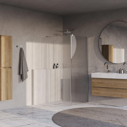 BRAUER Oblivion Inloopdouche - 90x200cm - 30cm zijwand - helder ribbel glas - glascoating - Hoogglans Chroom