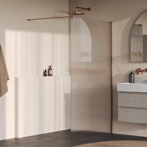 BRAUER Oblivion Inloopdouche - 120x200cm - helder ribbel glas - glascoating - PVD - Geborsteld Koper