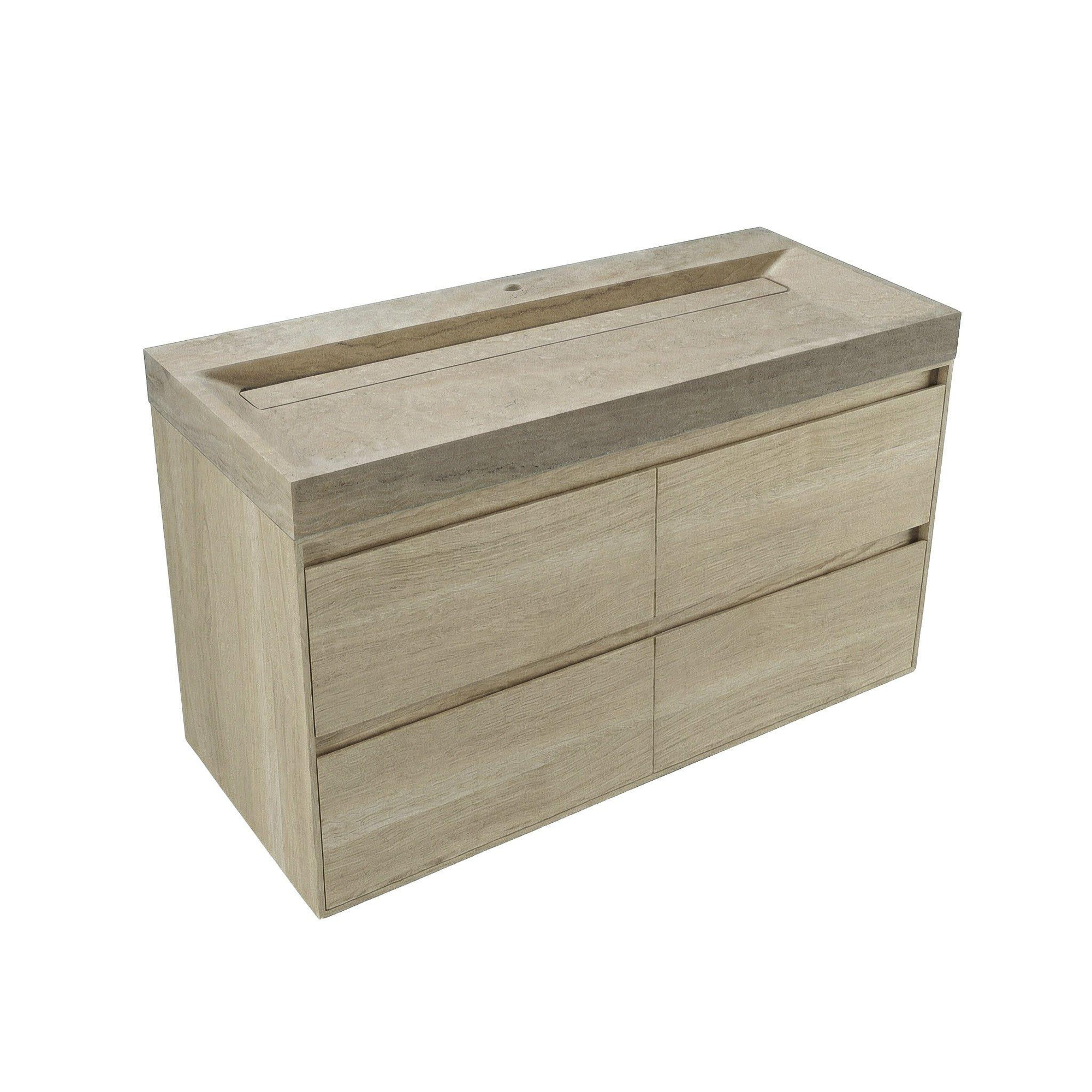 Forzalaqua Ibiza Badkamermeubelset - 120x50x70cm - 4 lades - travertin wastafel - 1 kraangat - steunenset - afvoerplug - smoke