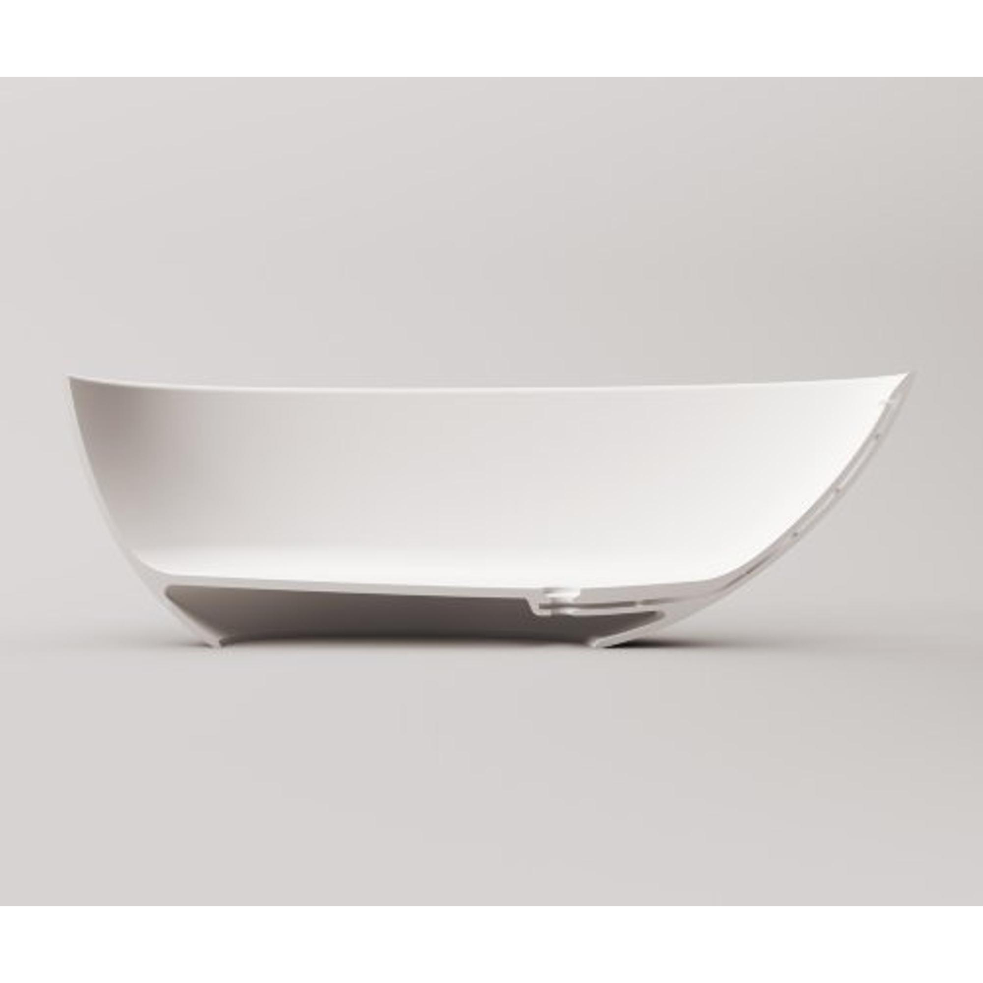 Het bad is vervaardigd uit solid surface, een hoogwaardig materiaal dat bekendstaat om zijn strakke, naadloze uitstraling en lange levensduur. Dit materiaal voelt zacht en warm aan en is tegelijkertijd robuust en slijtvast, zodat je jarenlang plezier hebt van je aankoop. Het gladde oppervlak zonder poriën maakt het bad extra hygiënisch: vuil en zeepresten hechten minder snel, waardoor schoonmaken eenvoudig blijft met een zachte doek en milde reiniger. Solid surface leent zich bovendien uitstekend voor strakke, moderne vormen, wat je terugziet in de elegante ovale lijn van dit bad. Zo combineer je duurzame kwaliteit met een tijdloos design dat niet snel uit de mode raakt.