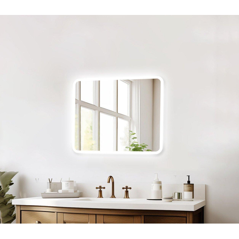 Deze moderne badkamerspiegel is een slimme keuze als je op zoek bent naar een strakke, functionele blikvanger boven je wastafel. Dankzij het compacte formaat van 60x70 cm past hij perfect in de kleinere tot middelgrote badkamer, het toilet of de logeerkamer, terwijl je toch een royale spiegel hebt voor je dagelijkse routines. De afgeronde hoeken zorgen voor een zachte, eigentijdse uitstraling die mooi combineert met vrijwel elke badkamerstijl, van minimalistisch tot hotel-chic. Doordat je de spiegel zowel horizontaal als verticaal kunt plaatsen, heb je veel vrijheid in de manier waarop je jouw ruimte inricht. De indirecte LED verlichting geeft een fijne, egale gloed langs de randen, ideaal als sfeerverlichting of als extra licht tijdens het tandenpoetsen en opmaken. Met geïntegreerde spiegelverwarming en een handige infrarood-sensor aan de onderzijde richt deze spiegel zich duidelijk op comfort: geen beslagen glas meer na het douchen en bediening zonder aanraken, wat extra hygiënisch en praktisch is in het dagelijks gebruik.