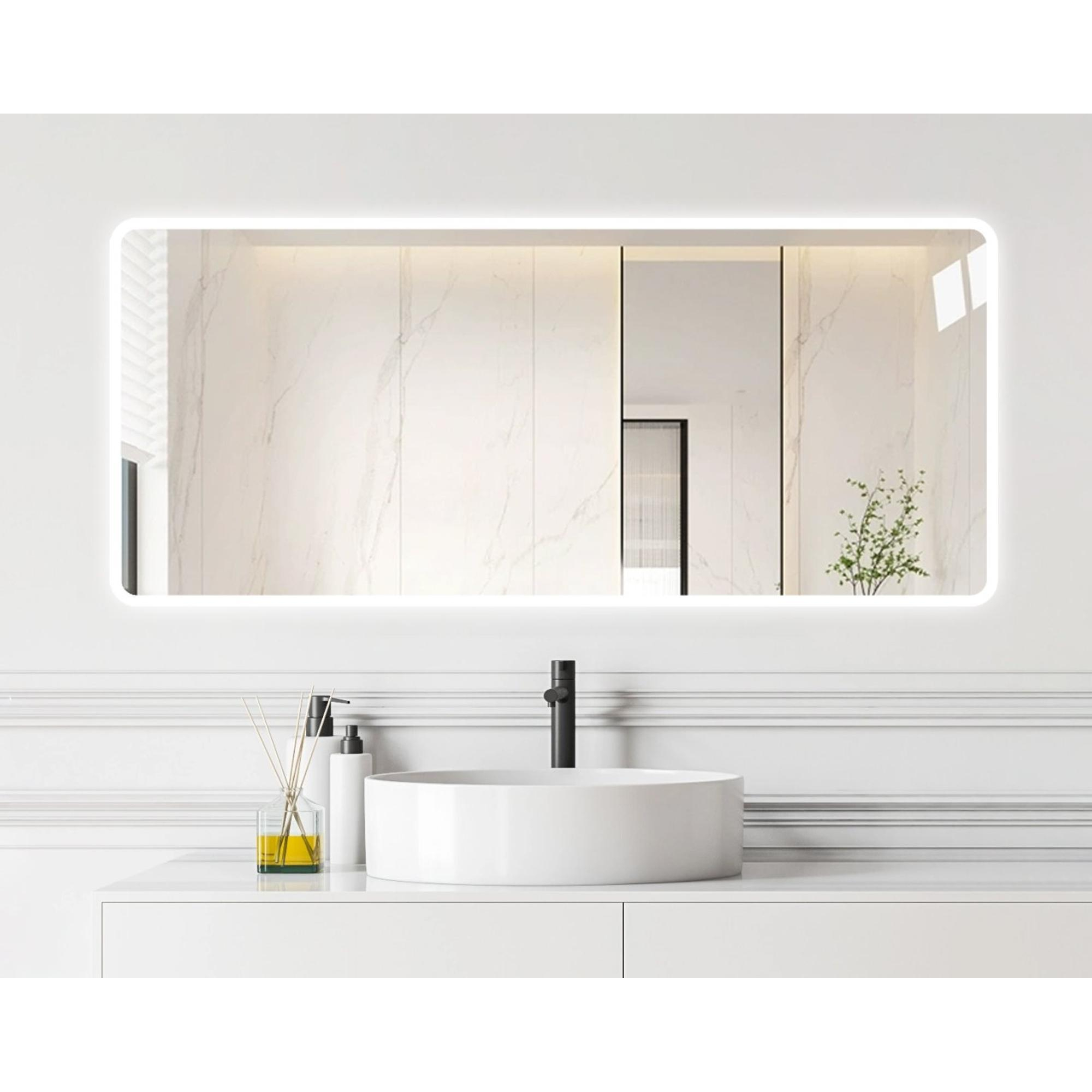 Fugaflow Eccelente Arredo Badkamerspiegel - 160x70cm - met afgeronde hoeken - horizontale / verticale plaatsing - indirecte LED verlichting - spiegelverwarming - Infrarood-sensor aan onderzijde