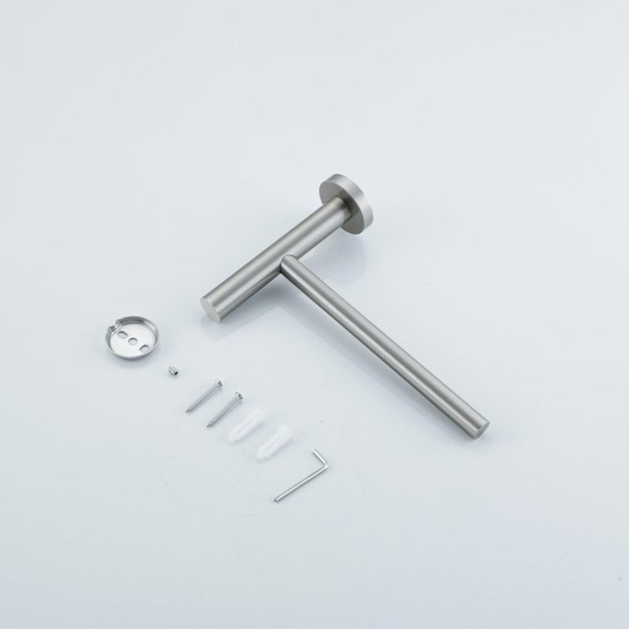 Zoek je een complete, stijlvolle set om je toiletruimte of compacte badkamer in één keer netjes en opgeruimd in te richten, zonder dat je alles los bij elkaar hoeft te zoeken? Dan is deze vijfdelige accessoireset een slimme keuze. De combinatie van toiletrolhouder, reserverolhouder, toiletborstelhouder, handdoekhaak en pedaalemmer zorgt ervoor dat alles wat je dagelijks nodig hebt binnen handbereik is en mooi bij elkaar past. Dankzij de geborstelde rvs-look met duurzame PVD-afwerking sluit deze set perfect aan bij moderne badkamers, hotelchique interieurs en tijdloze, minimalistische ruimtes. Ideaal als je een nieuwe toiletruimte inricht, een bestaande wc wilt upgraden of een gastenbadkamer een rustige, luxe uitstraling wilt geven.