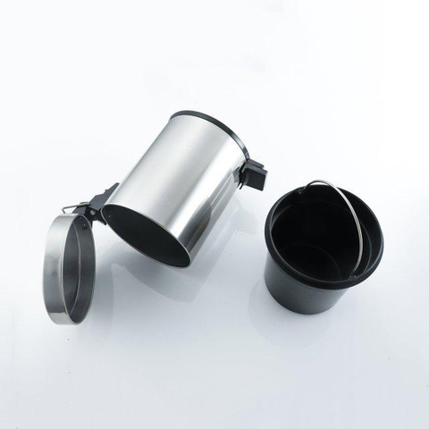- Vijfdelige set met toiletrolhouder, reserverolhouder, toiletborstelhouder, handdoekhaak en pedaalemmer voor een complete toiletruimte.