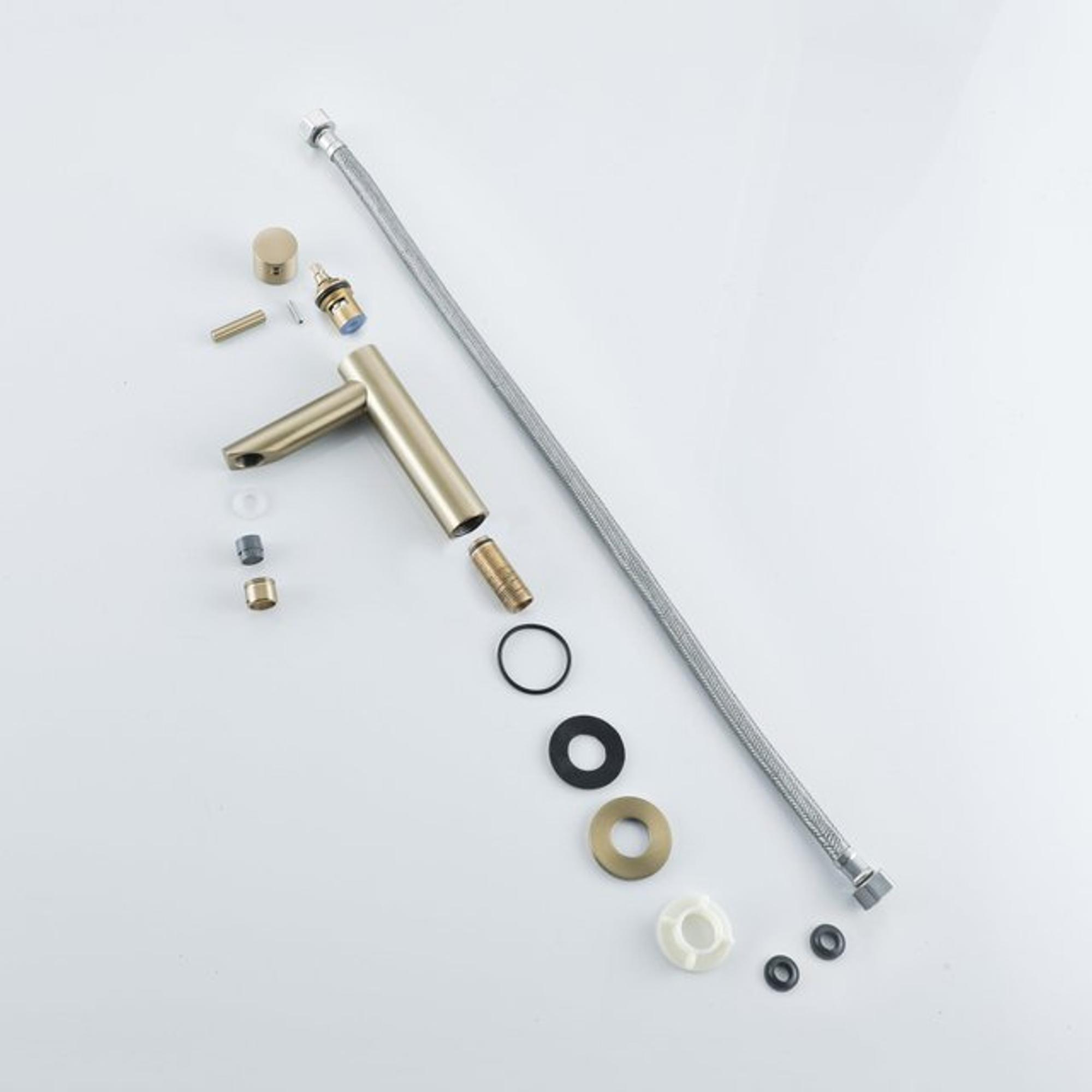 - Geborsteld messing PVD in goudkleur voor een warme, luxe en eigentijdse uitstraling.