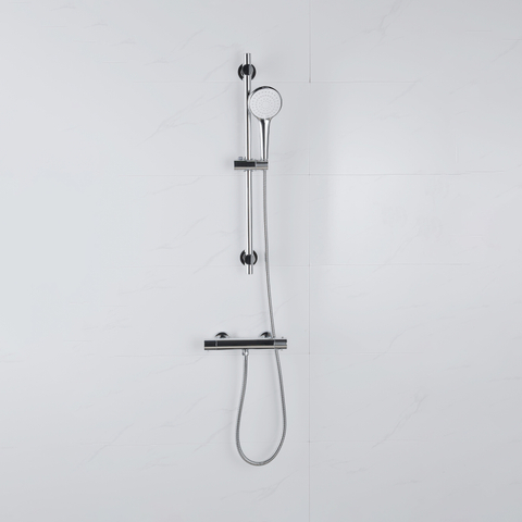 - Compleet opbouw doucheset met thermostaatkraan, handdouche, glijstang en metalen doucheslang