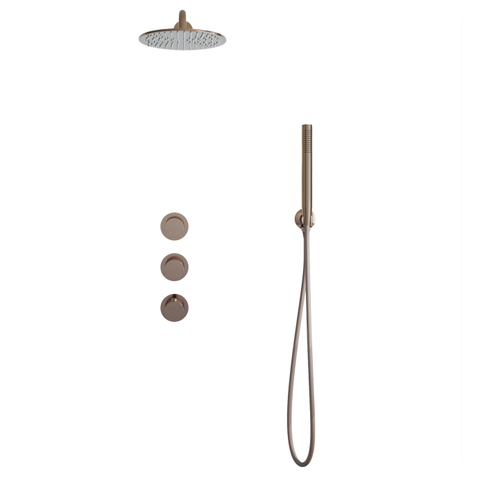 Fortifura Nebbio Regendoucheset - inbouwkraan - inbouwdeel - wandaansluitbocht- doucheslang metaal - staafhanddouche - 35cm wandarm - 25cm ronde hoofddouche - geborsteld koper PVD