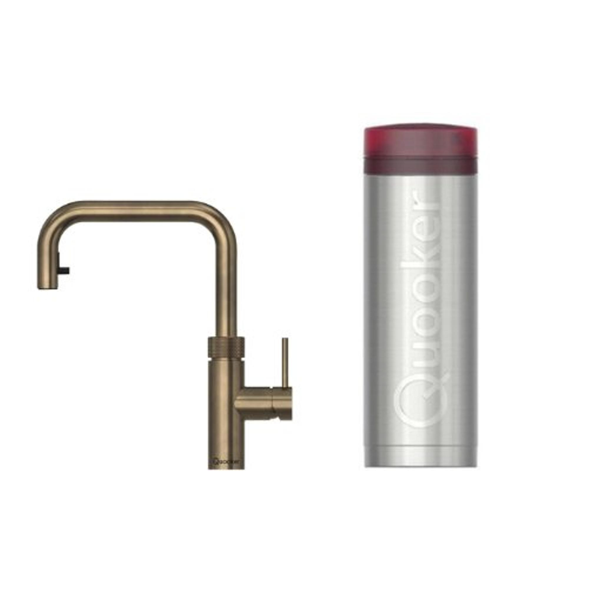 Quooker BE Flex Square kokendwaterkraan - draaibare & uittrekbare uitloop - PRO3 reservoir - kokend water - messing patina