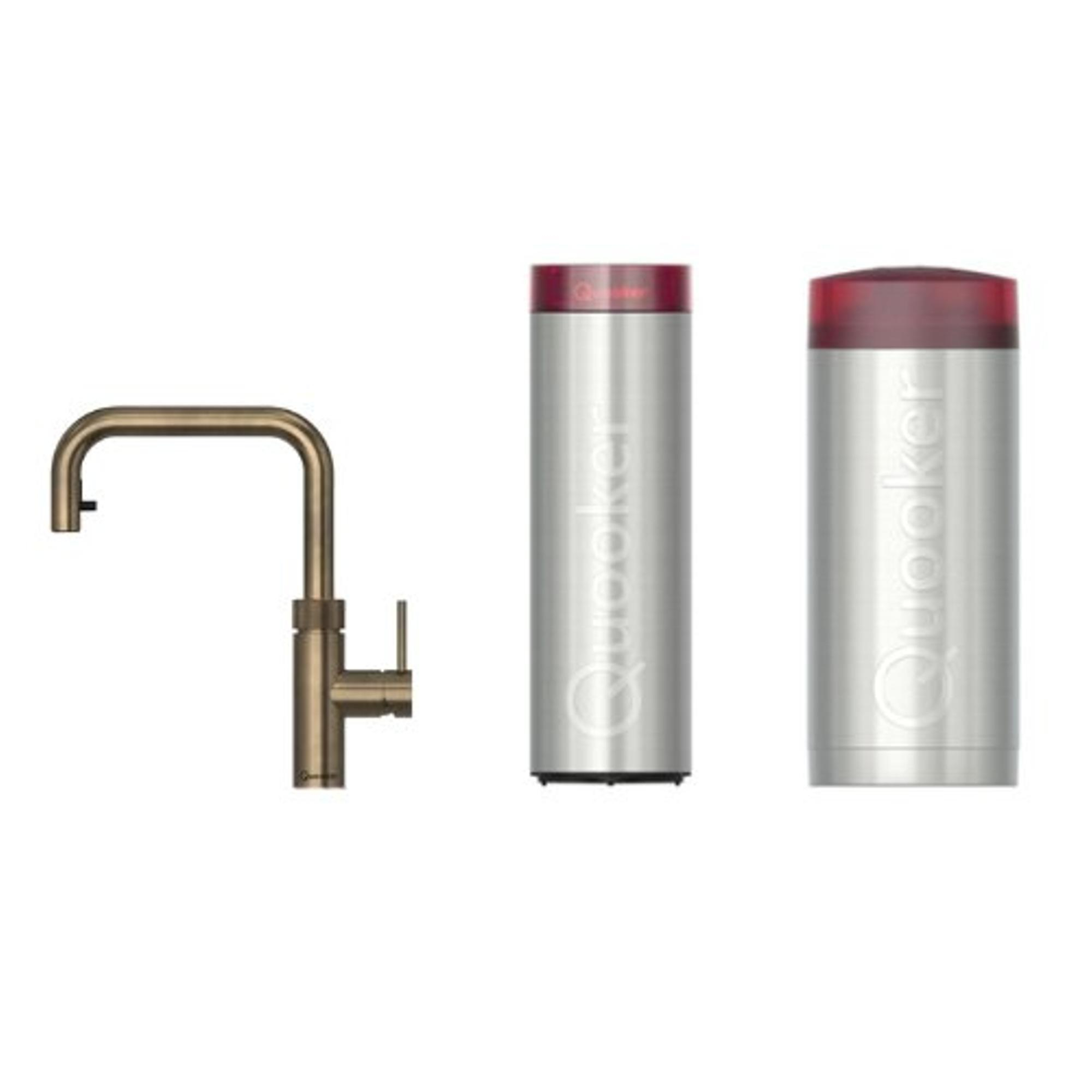 Quooker BE Flex Square kokendwaterkraan - draaibare & uittrekbare uitloop - Combi incl. Cube reservoir - Warm / kokend / bruisend / gefilterd water - messing patina