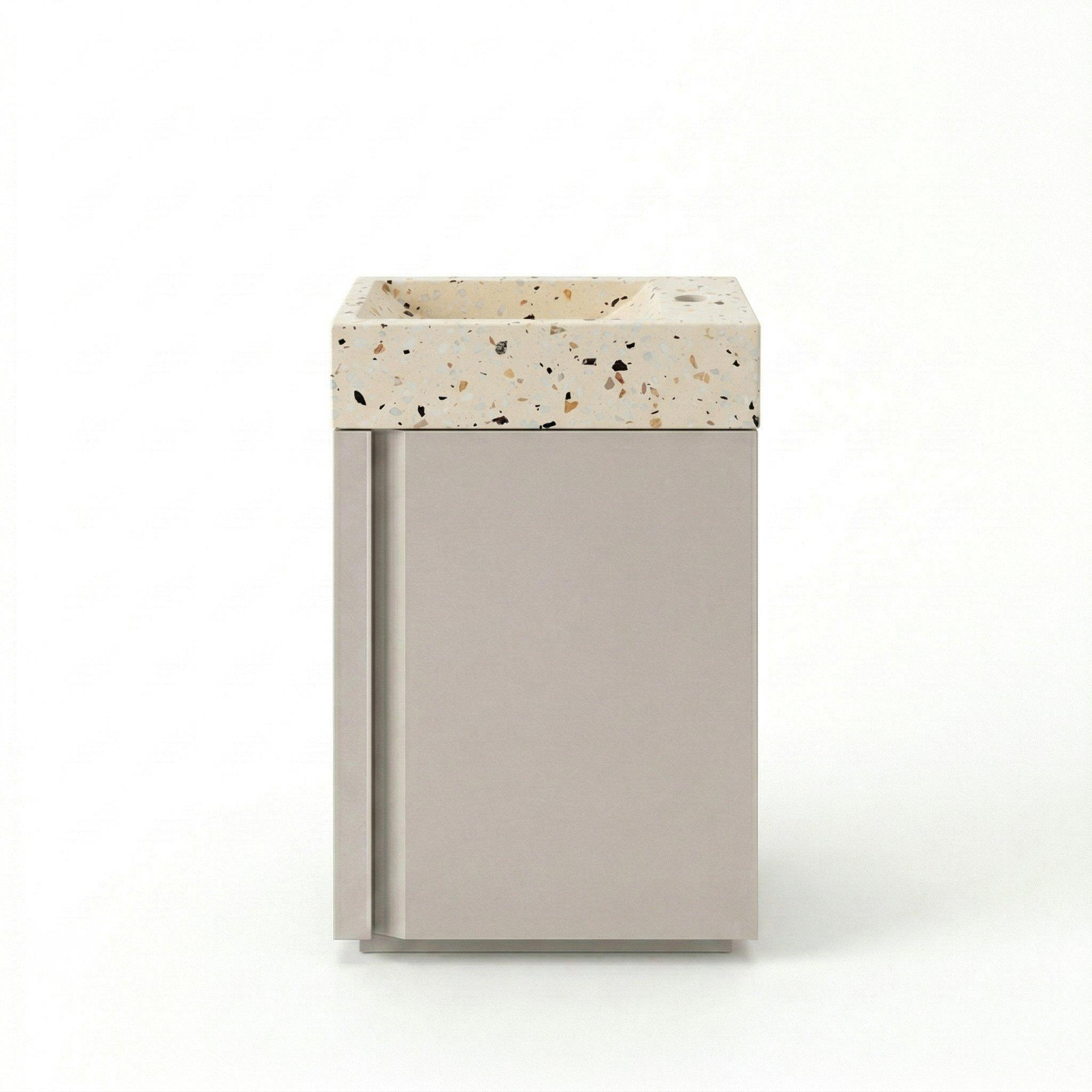 - Compacte Saniclass Chaci toiletmeubelset - 40x65cm - 1 deur - 1 kraangat - rechts - fontein terrazzo - mat cotton (beige) voor toilet of kleine badkamer