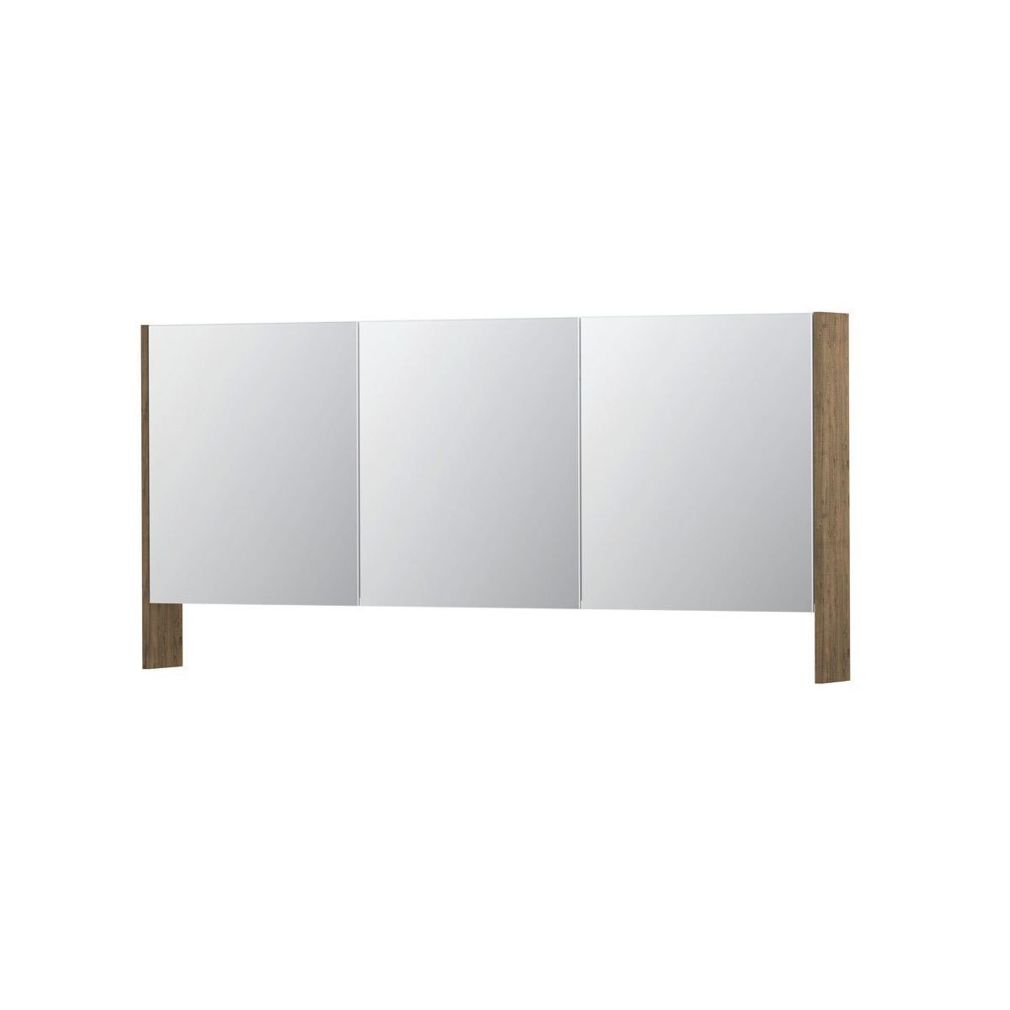 INK SPK3 Spiegelkast - 160x14x74cm - 3 deuren - dubbelzijdige Spiegel - met planchet - mat wit - schakelaar en stopcontact - MFC Naturel eiken