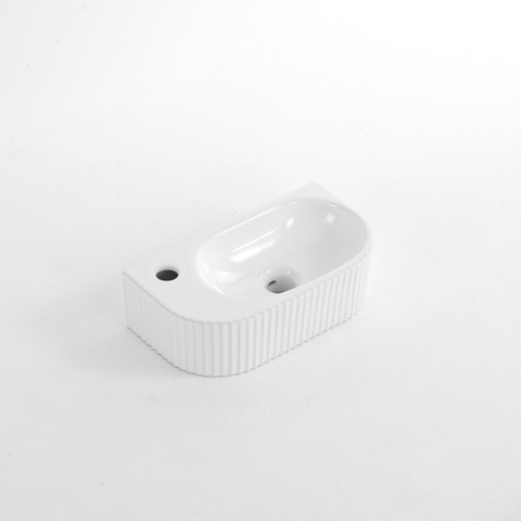 QeramiQ Blend Fontein - 40x22x12cm - ribbel - halfrond - kraangat links - keramiek - glans wit