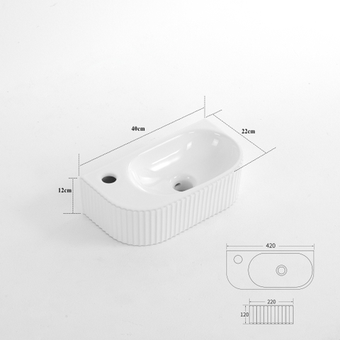 De bescheiden afmetingen van 40x22x12 cm maken dit fontein ideaal voor smalle toiletruimtes en compacte badkamers, waar iedere centimeter telt. Door de halfronde vorm blijft de doorgang ruim, maar heb je toch een volwaardige handwasplek. De kraanpositie aan de linkerkant is perfect als je leidingen of muren aan die zijde hebt, of als de indeling van je toilet daarom vraagt. In combinatie met een slanke fonteinkraan en een compact sifon creëer je zo een opstelling die prettig in het gebruik is en tegelijkertijd ruimtelijk oogt. Handen wassen gaat comfortabel, zonder gespetter of gedoe, en dankzij de opstaande randen blijft het water netjes in de kom.