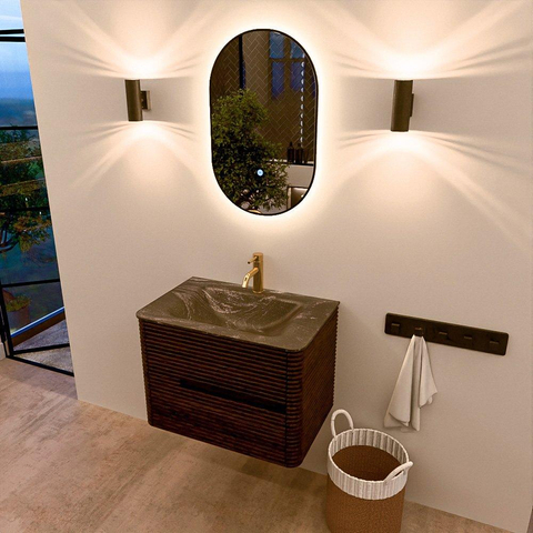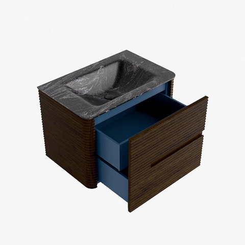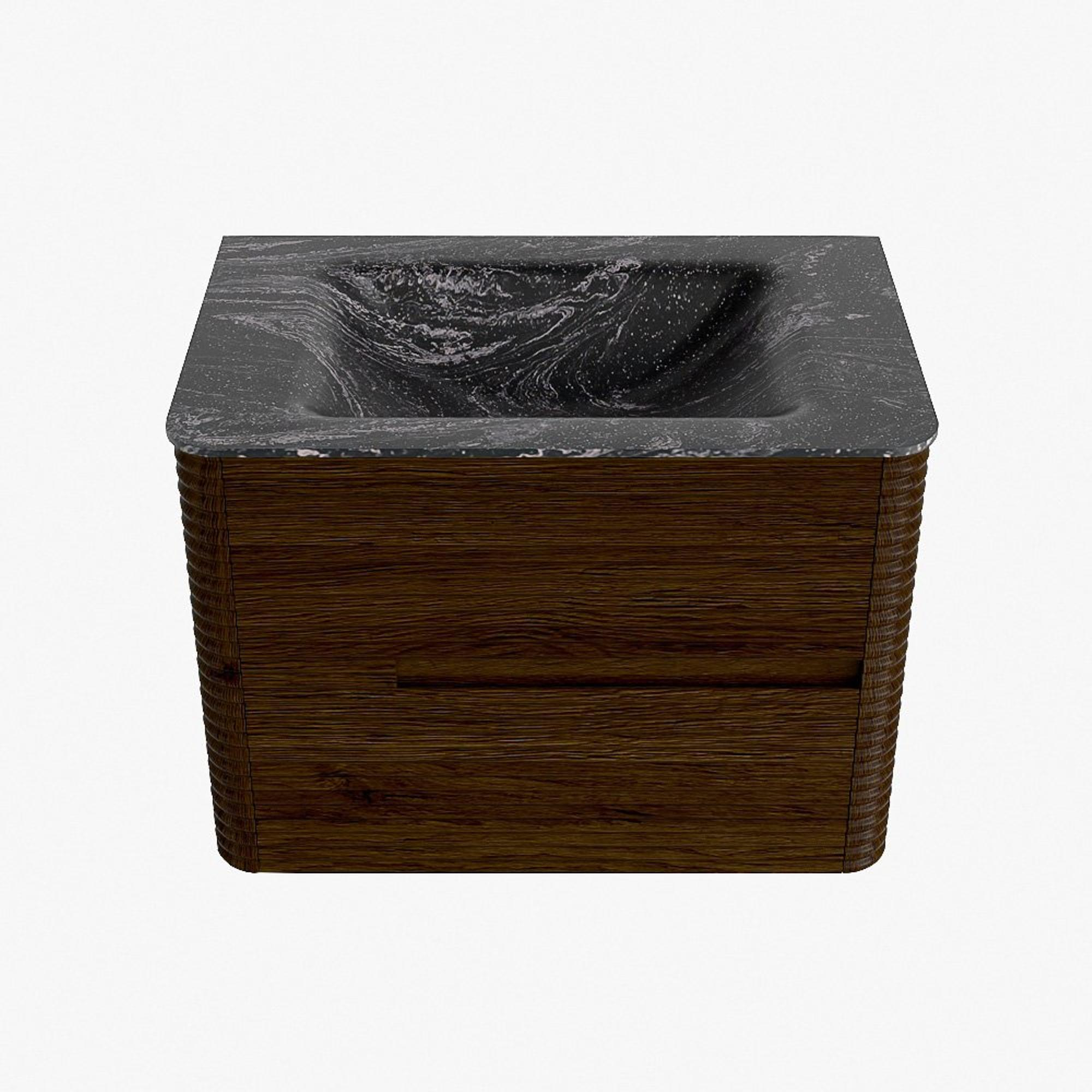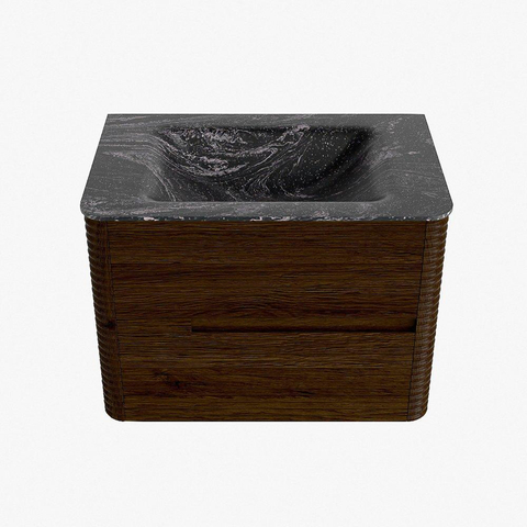 Mondiaz CIRO-DLUX Badkamermeubelset - 70x45x50cm - Solid surface wastafel Lava - 1 wasbak Midden - 1 kraangat - 2 lades - Walnut