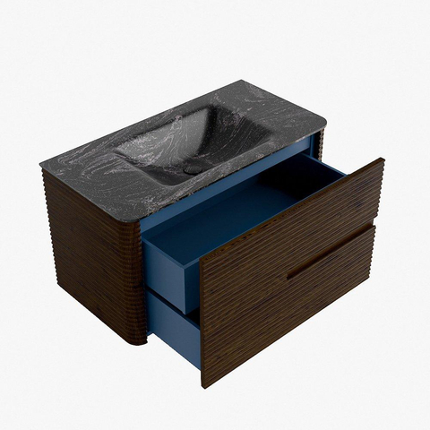 Mondiaz CIRO-DLUX Badkamermeubelset - 90x45x50cm - Solid surface wastafel Lava - 1 wasbak Midden - zonder kraangaten - 2 lades - Walnut