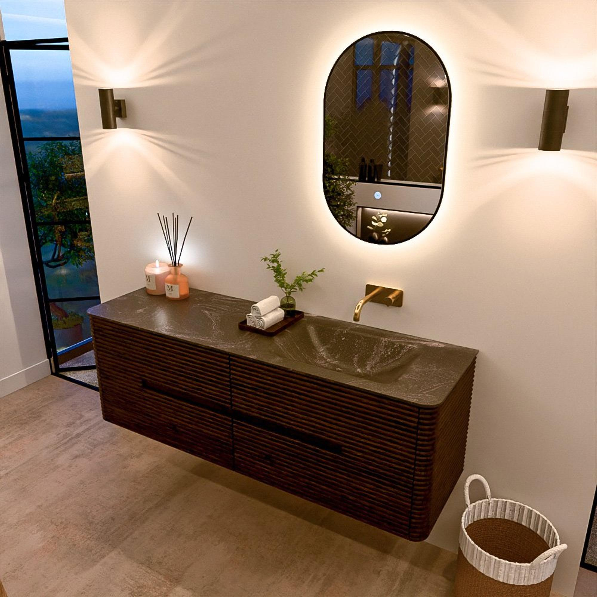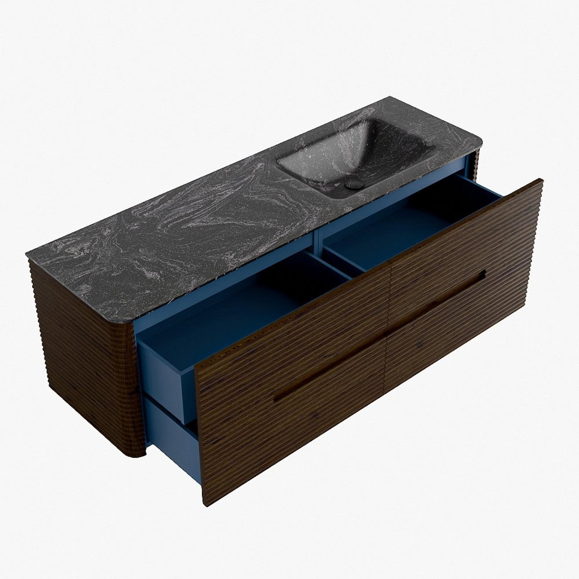 Mondiaz CIRO-DLUX Badkamermeubelset - 150x45x50cm - Solid surface wastafel Lava - 1 wasbak Rechts - zonder kraangaten - 4 lades - Walnut