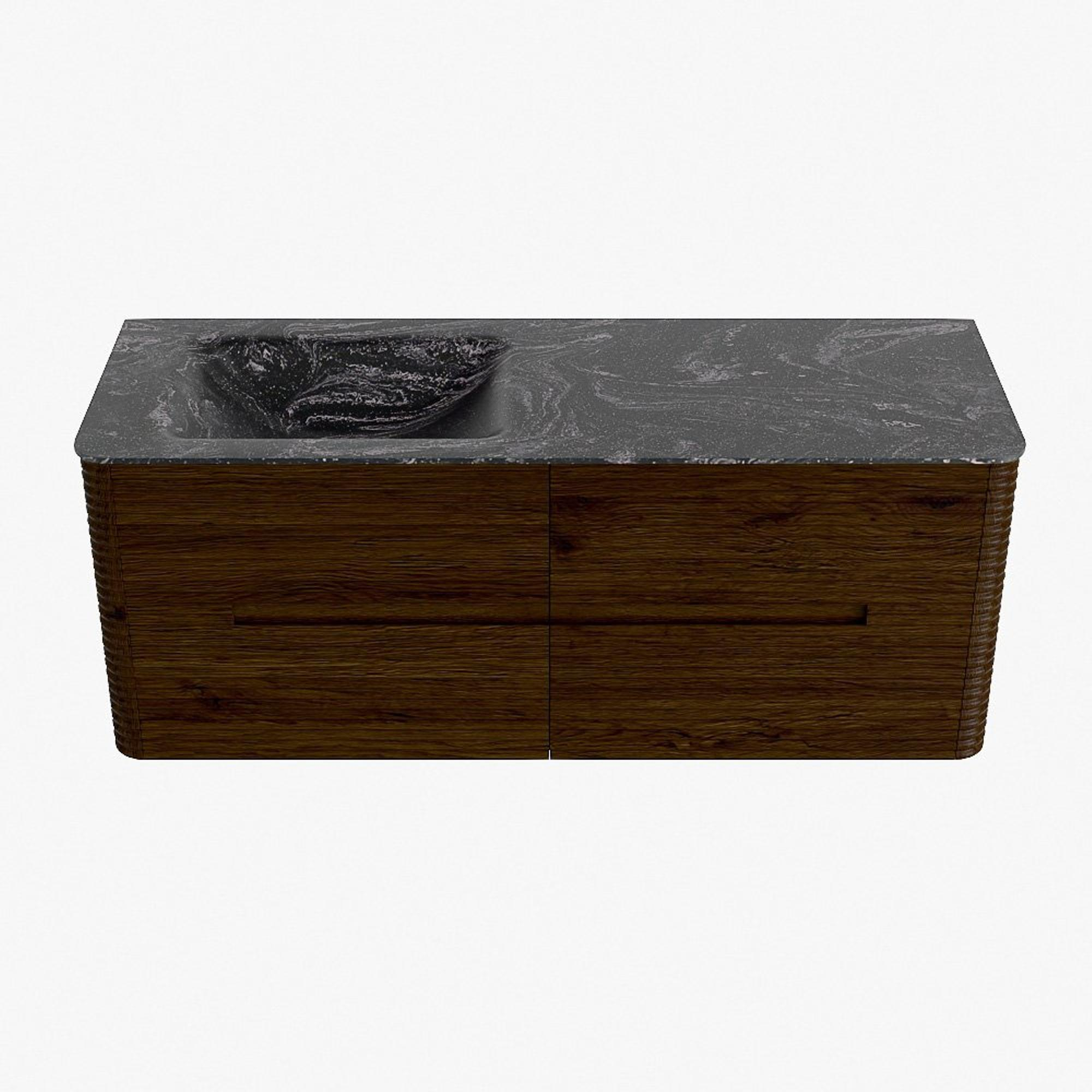 Mondiaz CIRO-DLUX Badkamermeubelset - 130x45x50cm - Solid surface wastafel Lava - 1 wasbak Links - 1 kraangat - 4 lades - Walnut